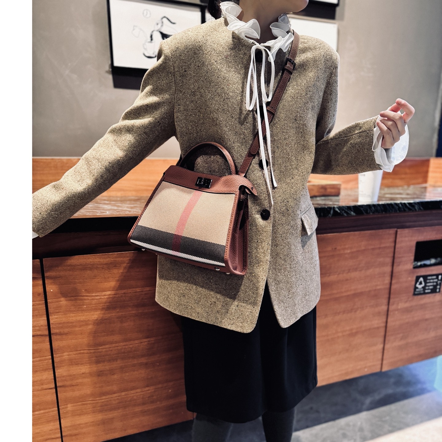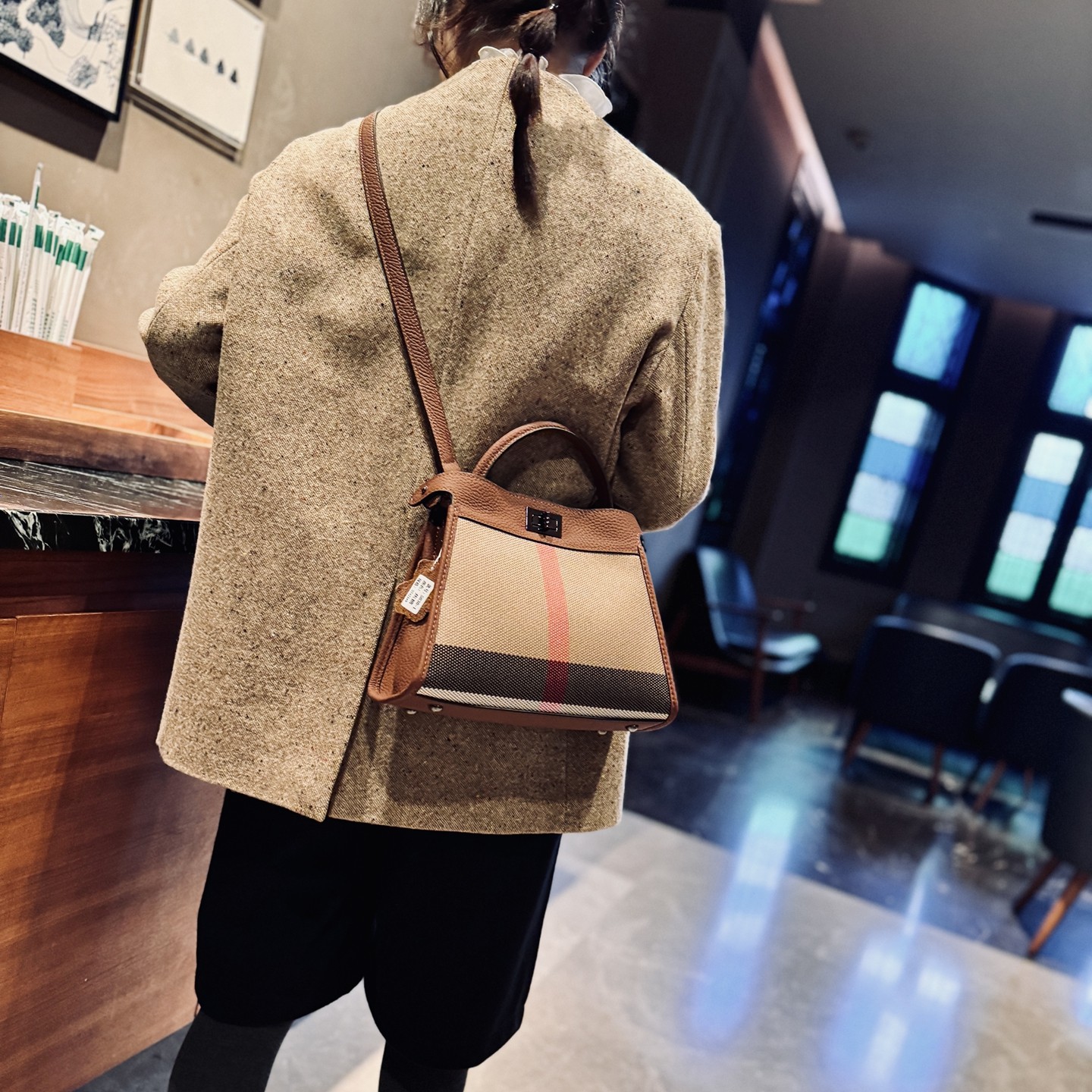 欧美时尚大容量真皮女包2025年新款格子格纹包牛皮托特包单肩大包