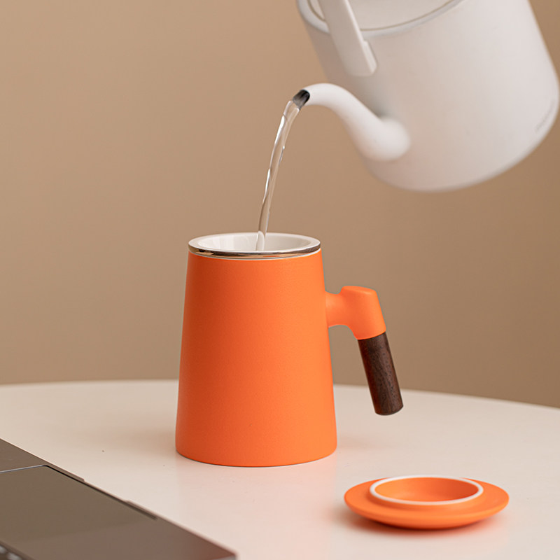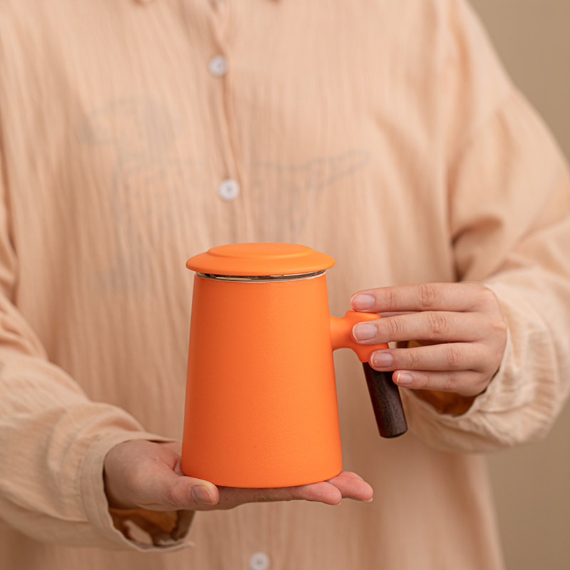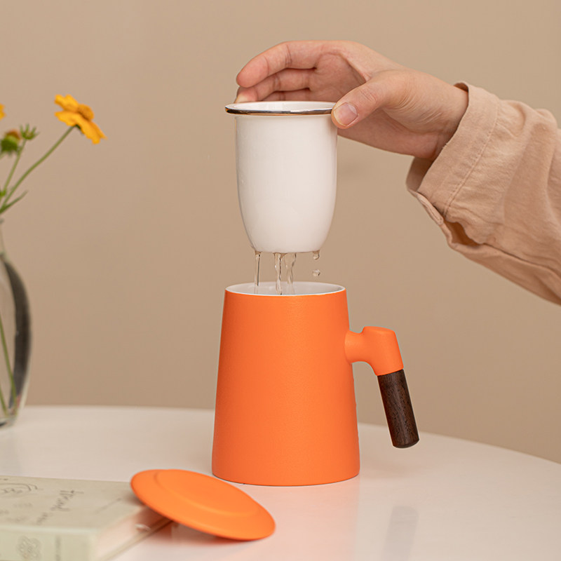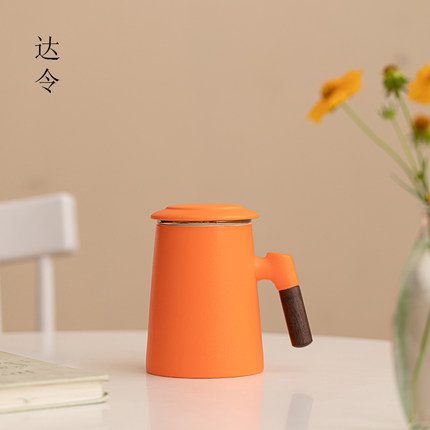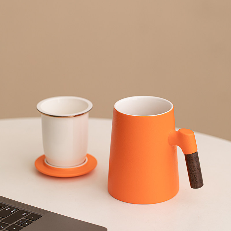 达令丨陶瓷办公杯喝茶杯橙色茶水分离杯带手柄简约水杯可定制logo