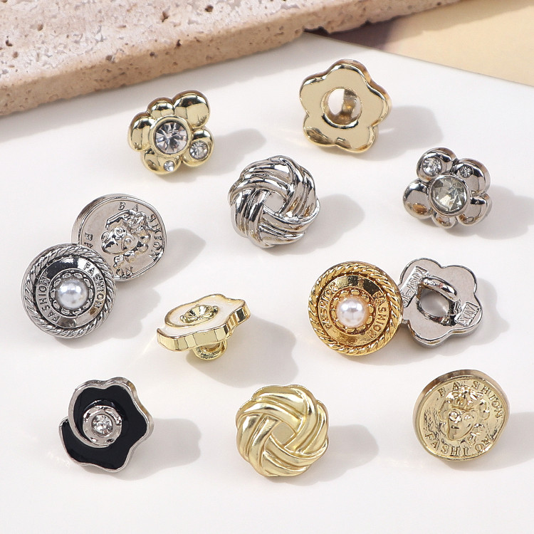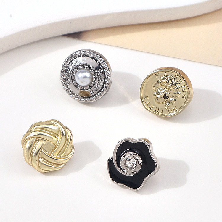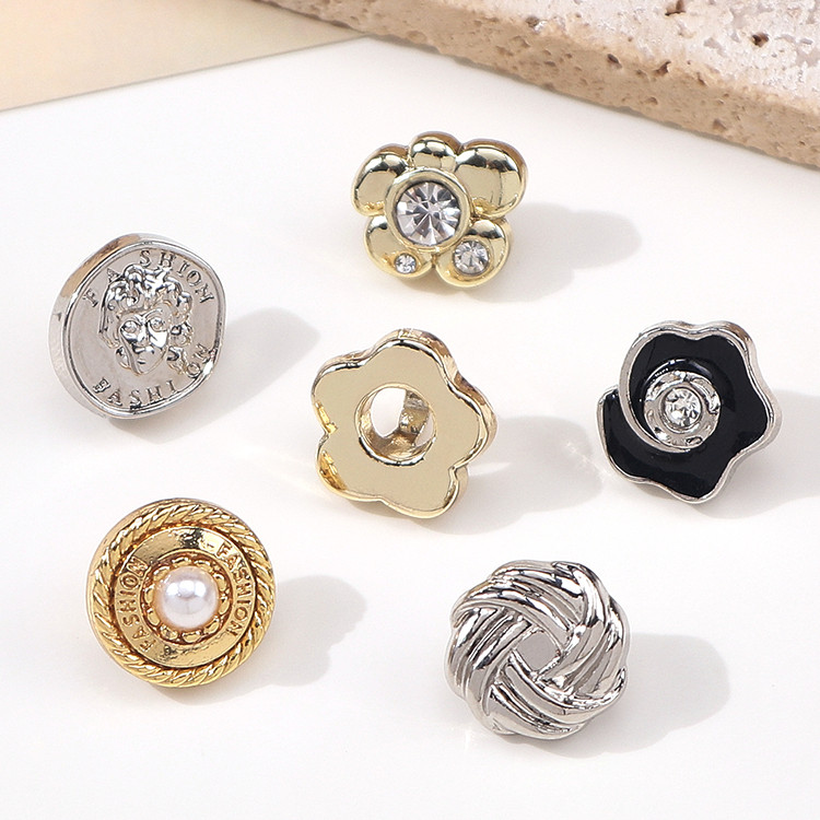 金属高端衬衫短袖雪纺连衣裙开衫女士装饰纽扣小号扣子小香风珍珠