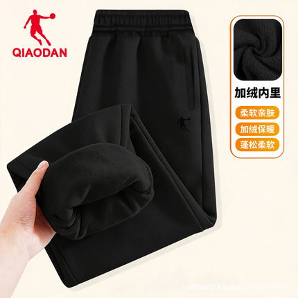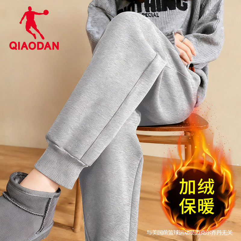 乔丹休闲运动裤女士黑色加绒保暖棉裤2026春季新款束脚长裤卫裤子