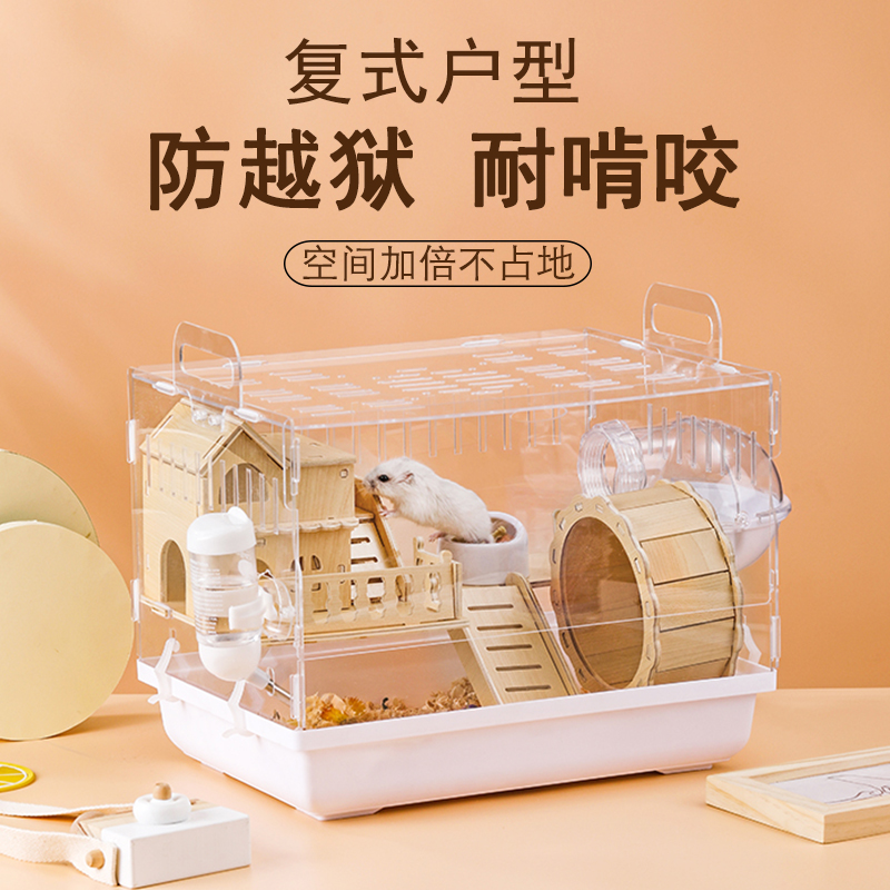 热销仓鼠笼子金丝熊双层超大透明别墅饲养箱实木用品玩具便宜套装