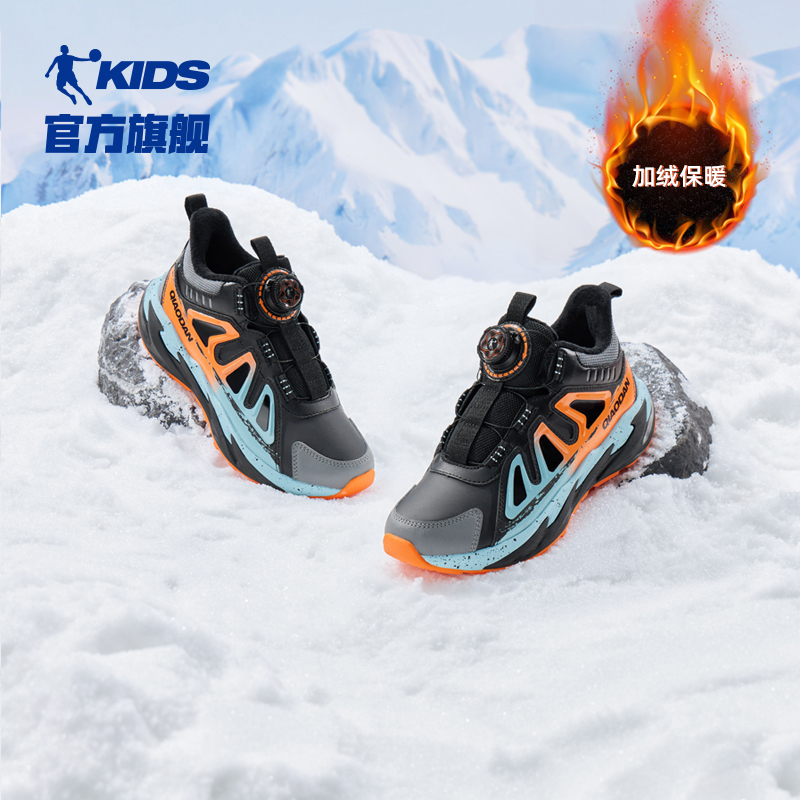 乔丹童鞋儿童二棉鞋2024冬季款加绒纽扣鞋子男童运动鞋保暖冬鞋