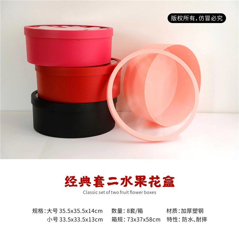 防水套二水d果鲜花礼盒 带绳子开窗大圆盒 花艺包装盒 插花盒