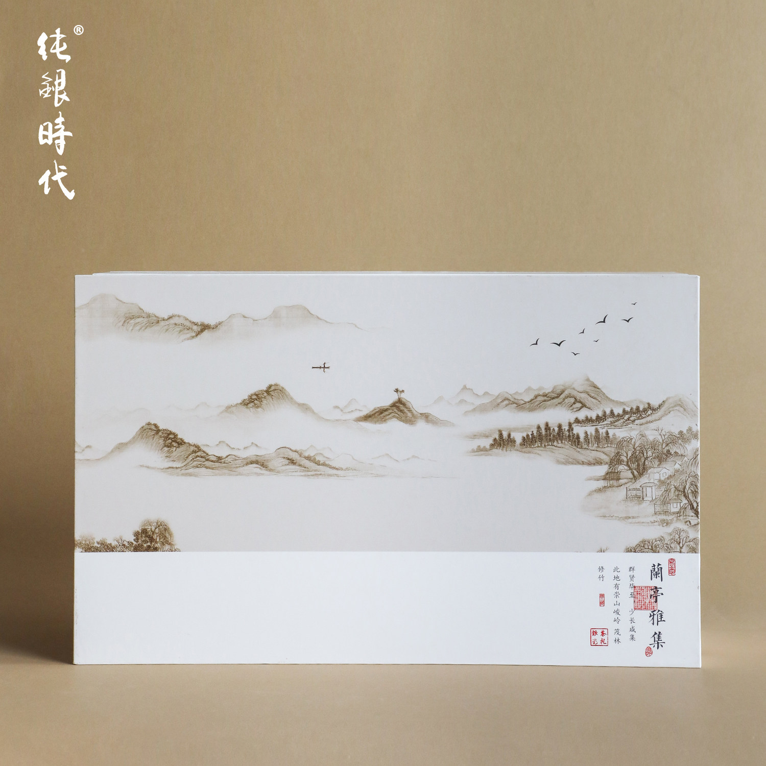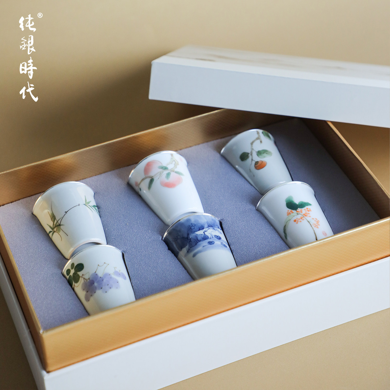纯银时代 兰亭雅集瓷包银杯礼盒景德镇手绘品茗杯999足银送礼50ml