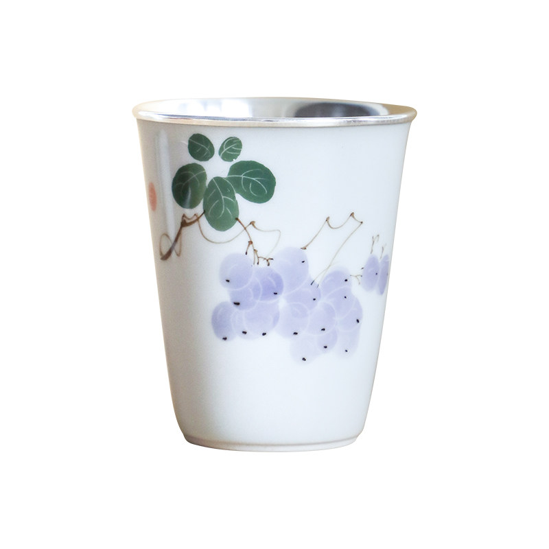 纯银时代手绘瓷包银足银中式茶杯