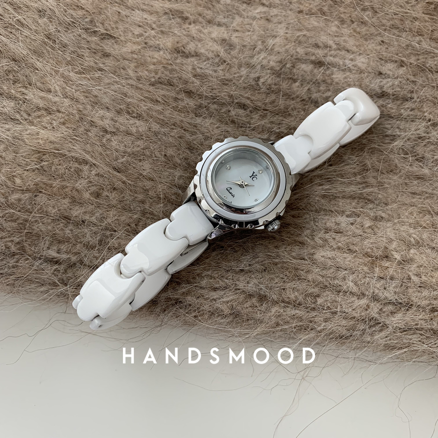 handsmood 《贝母陶瓷》气质白圆形小表盘温柔高级感女士手表AM40