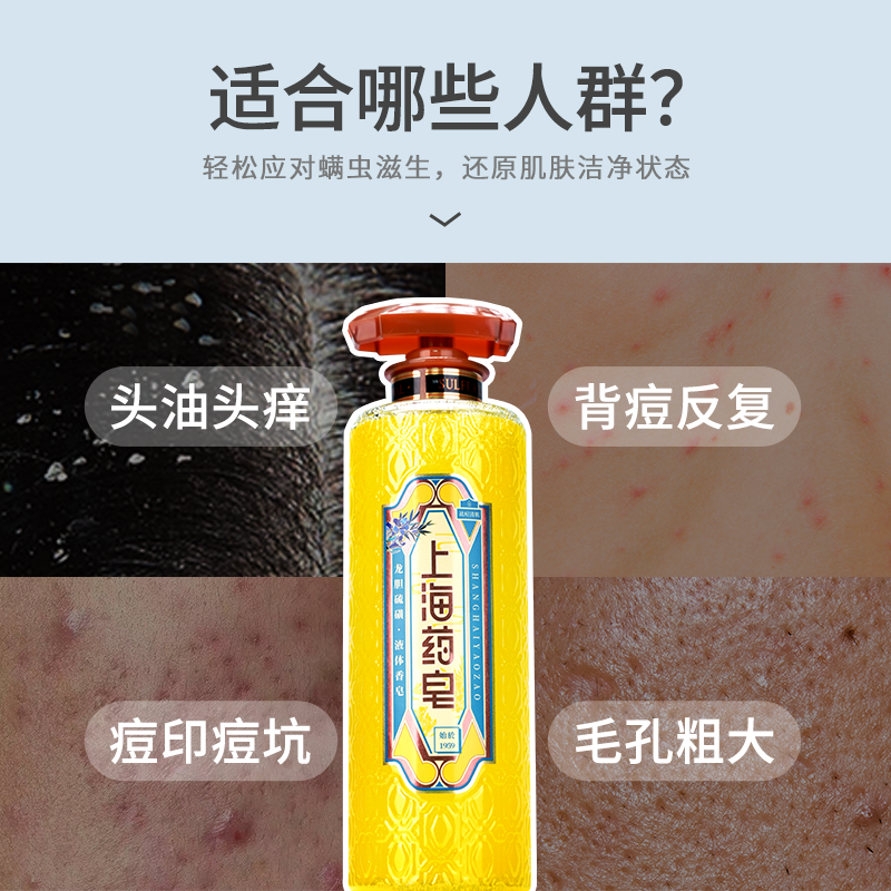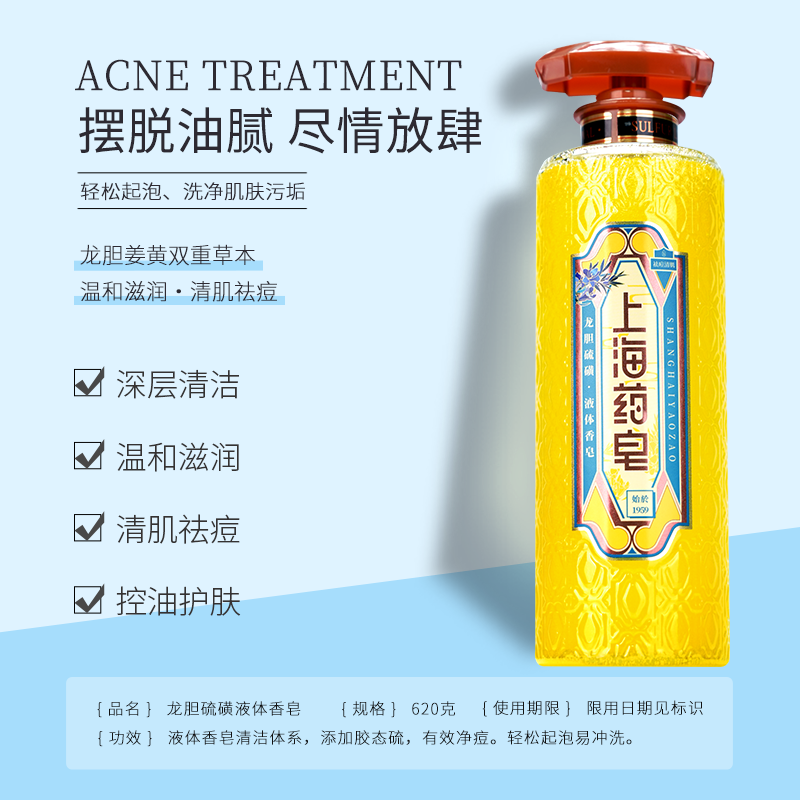 上海药皂龙胆沐浴露硫磺祛痘液体香皂国货硫磺皂沐浴洗脸洗发通用