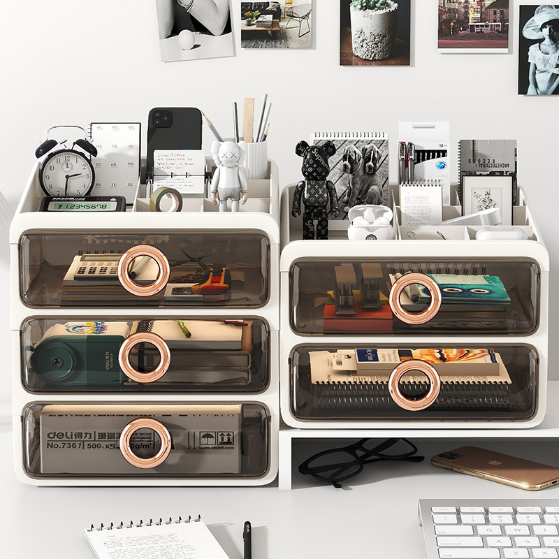 抽屉式透明桌面收纳盒A4文件文具置物架宿舍书桌办公桌整理收纳柜