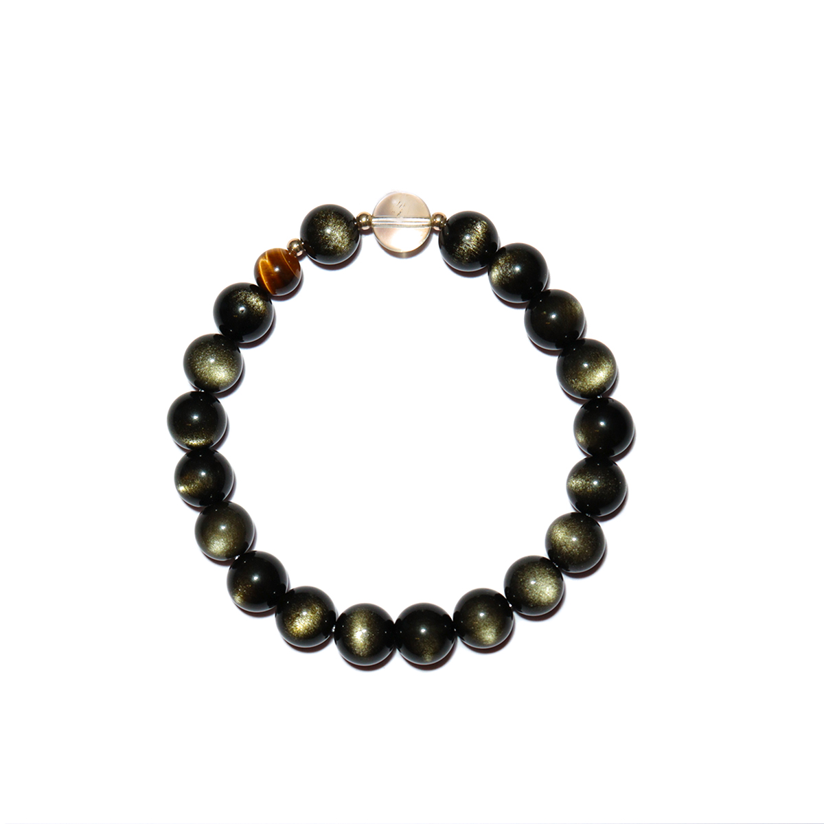 招财CrystalC天然黑曜石金曜石手链男女黄水晶虎眼石手串情侣礼物
