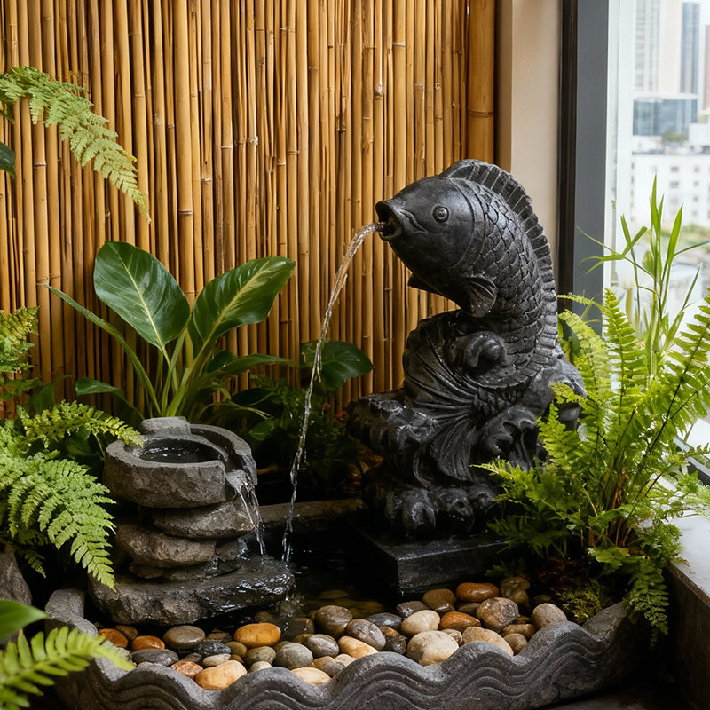 仿石鲤跃流水摆件招财循环水庭院花园造景户外水景喷泉落地装饰品