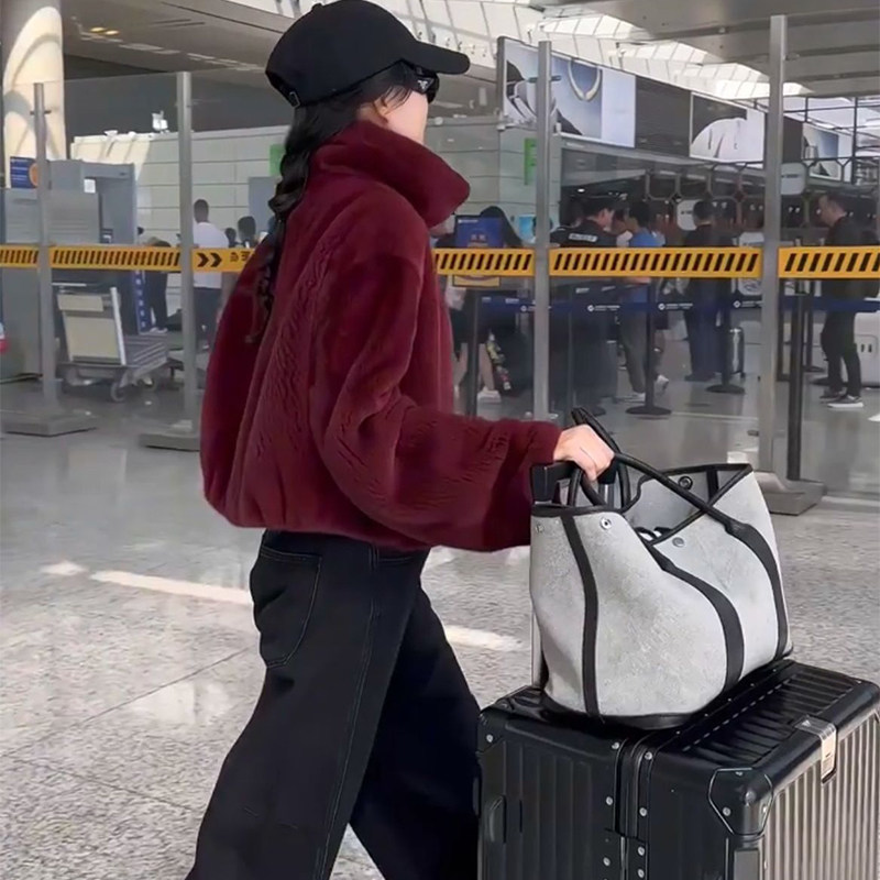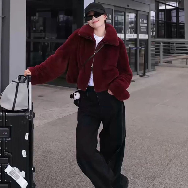 皮毛一体新款韩版立领短款环保水貂毛皮草外套女保暖宽松百搭上衣