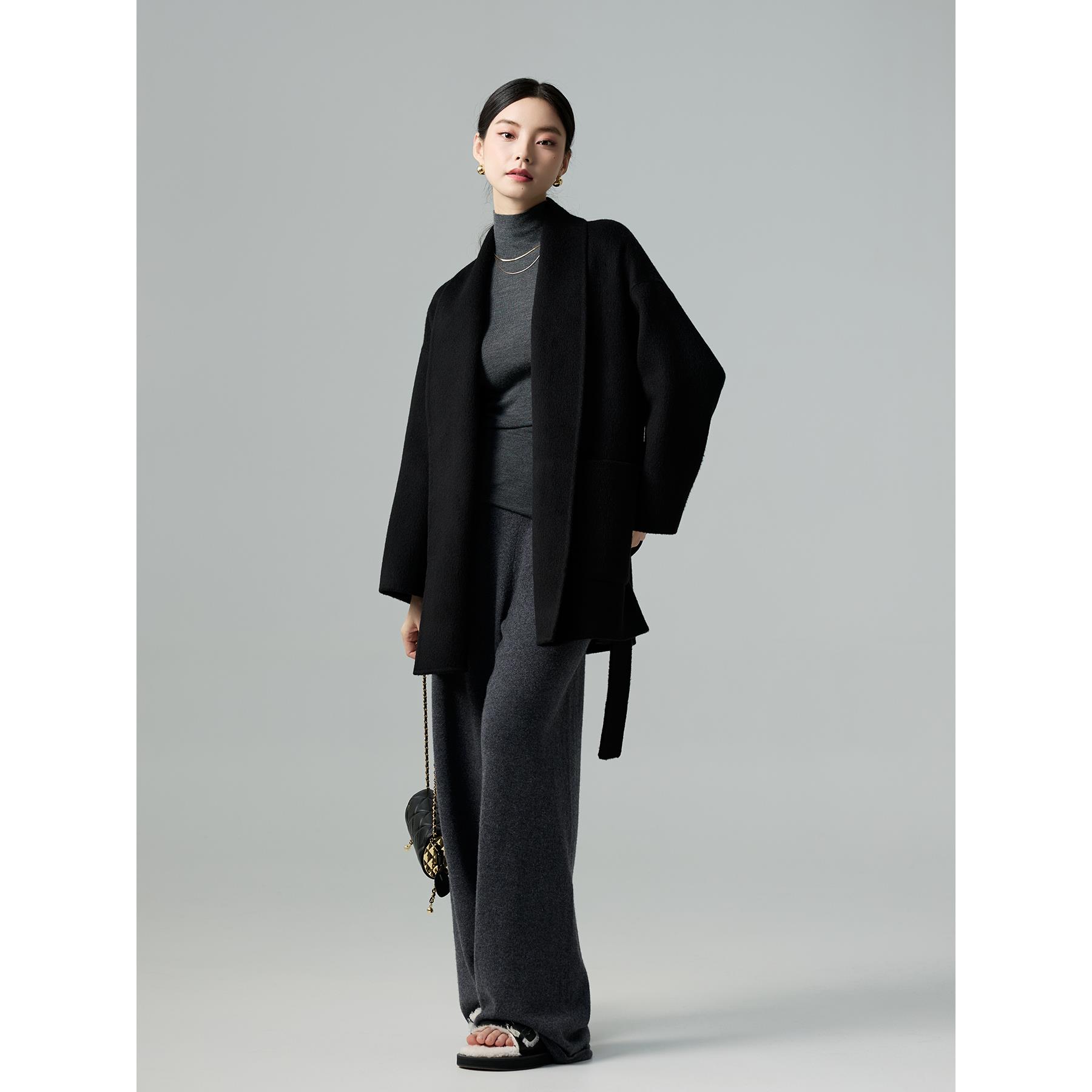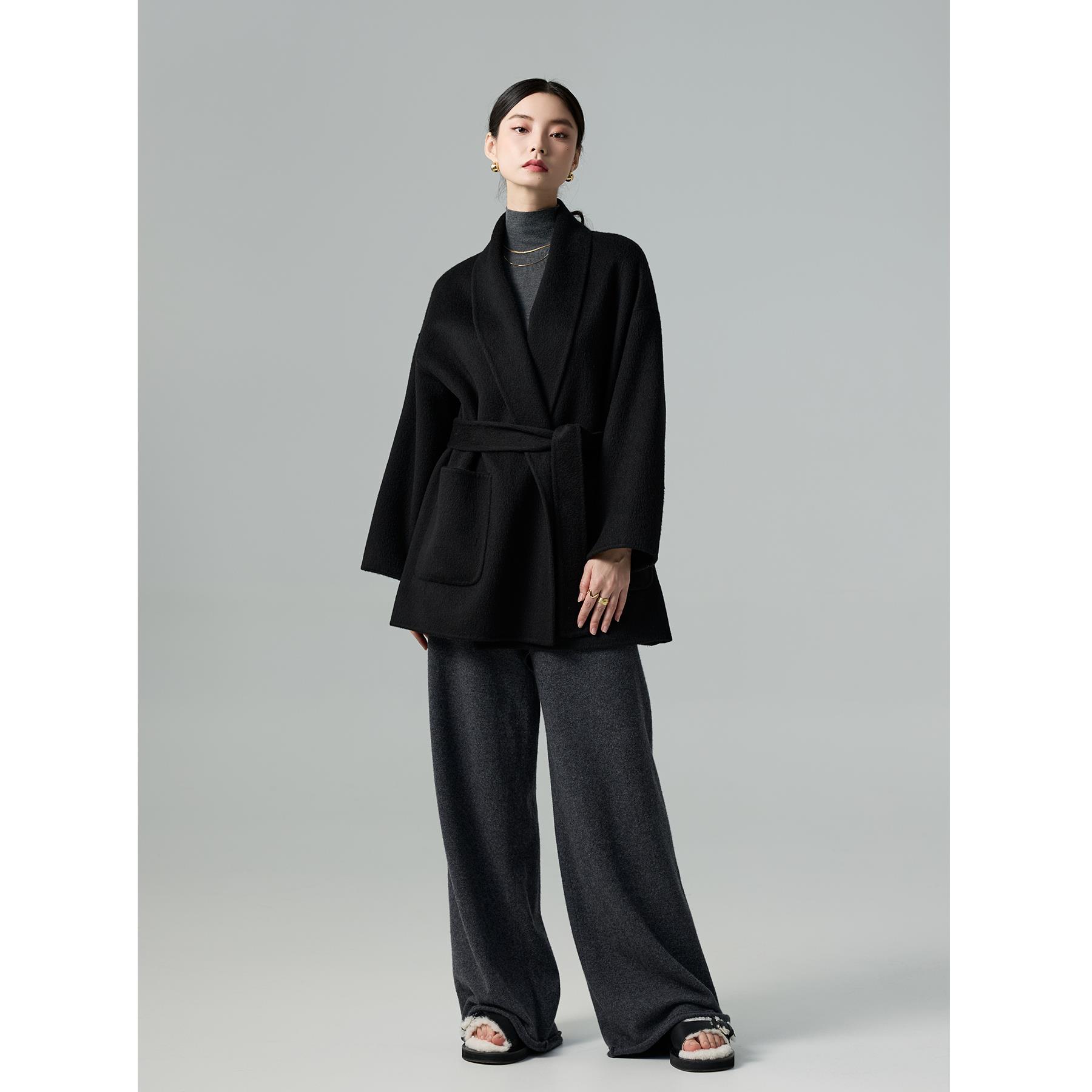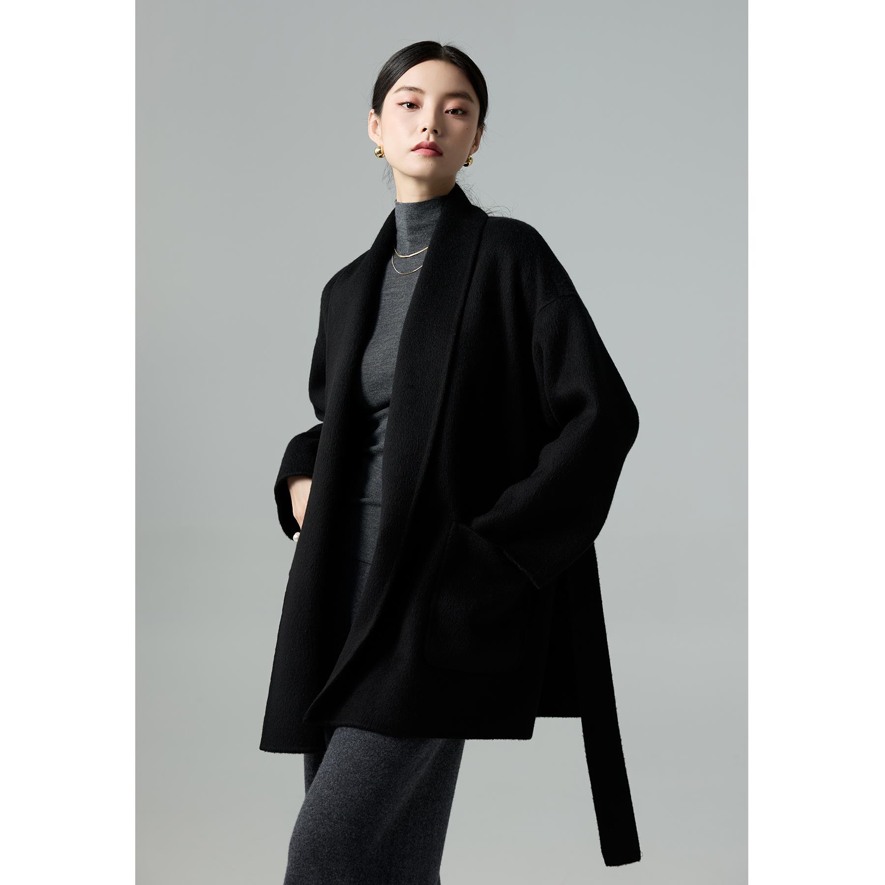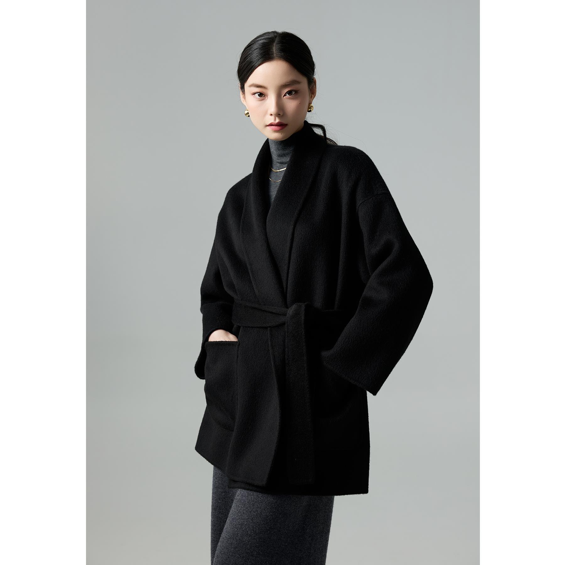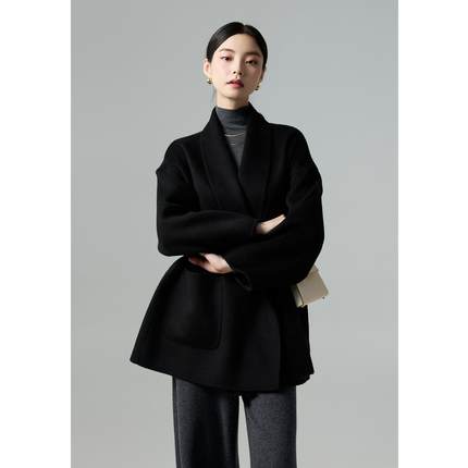 爵莱菲大码胖mm大衣女2025秋冬新款黑色超好看双面羊绒短款外套