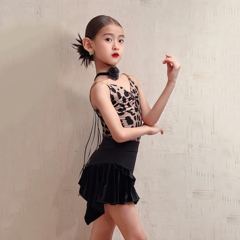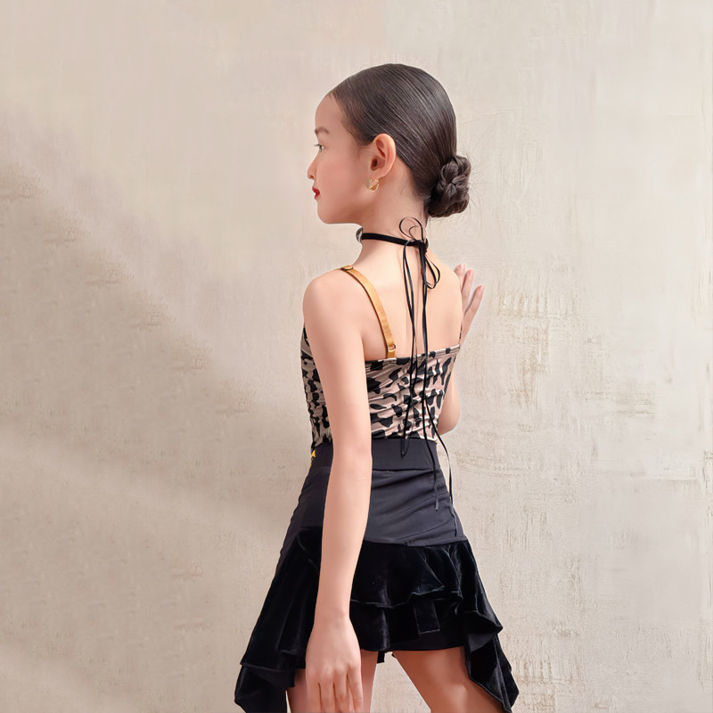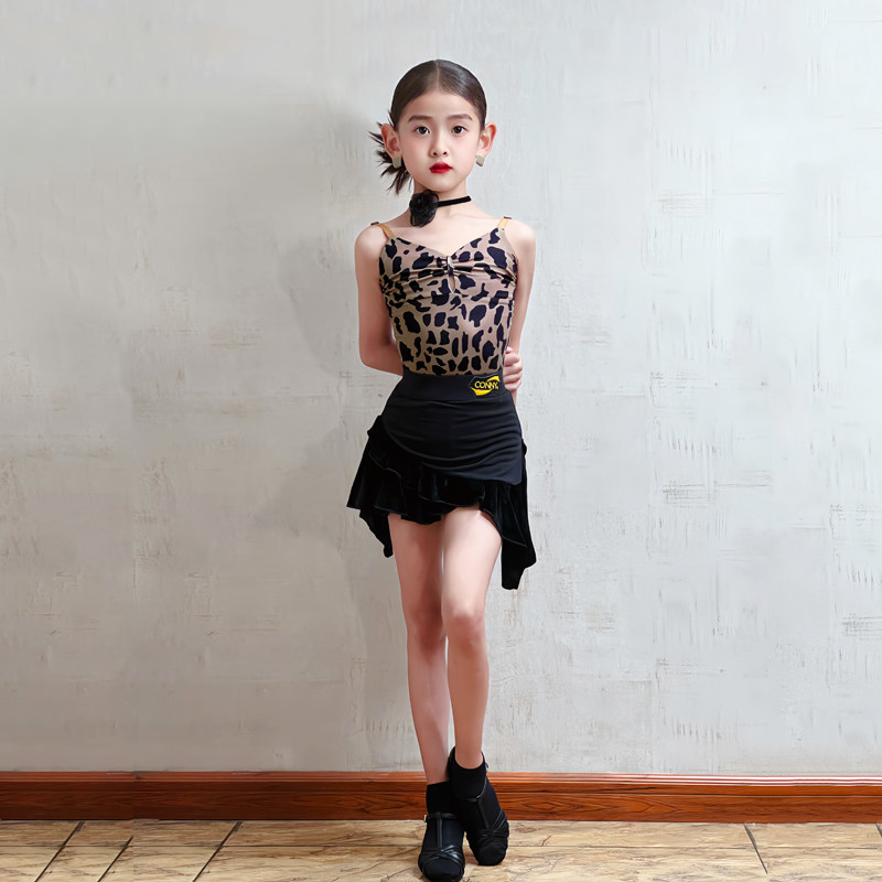 CONNY夏新款拉丁舞服装女豹纹吊带连体上衣舞蹈练功服儿童半身裙