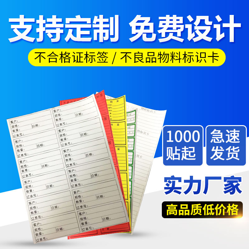 贴纸定做红色不合格物料标识卡