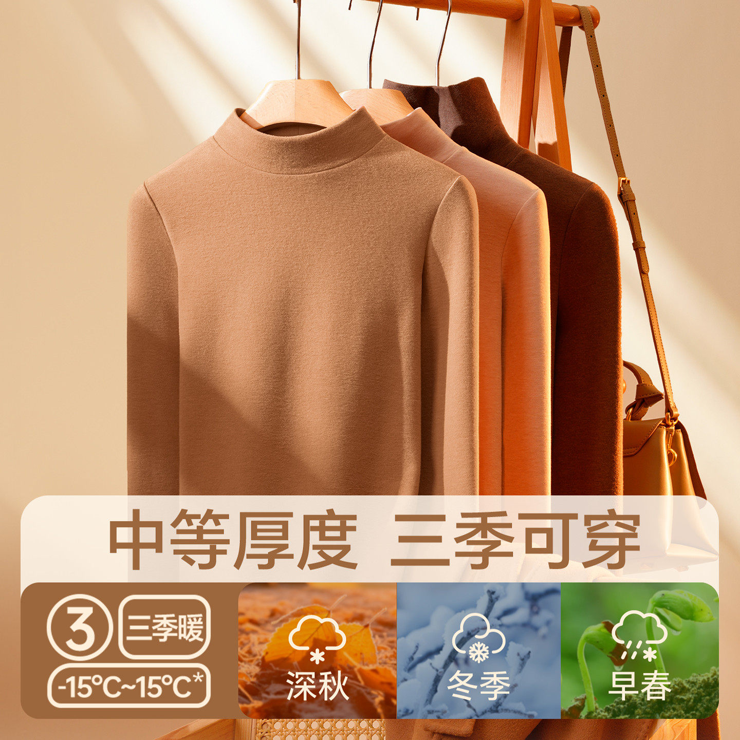 简云羊毛蚕丝半高领德绒打底衫