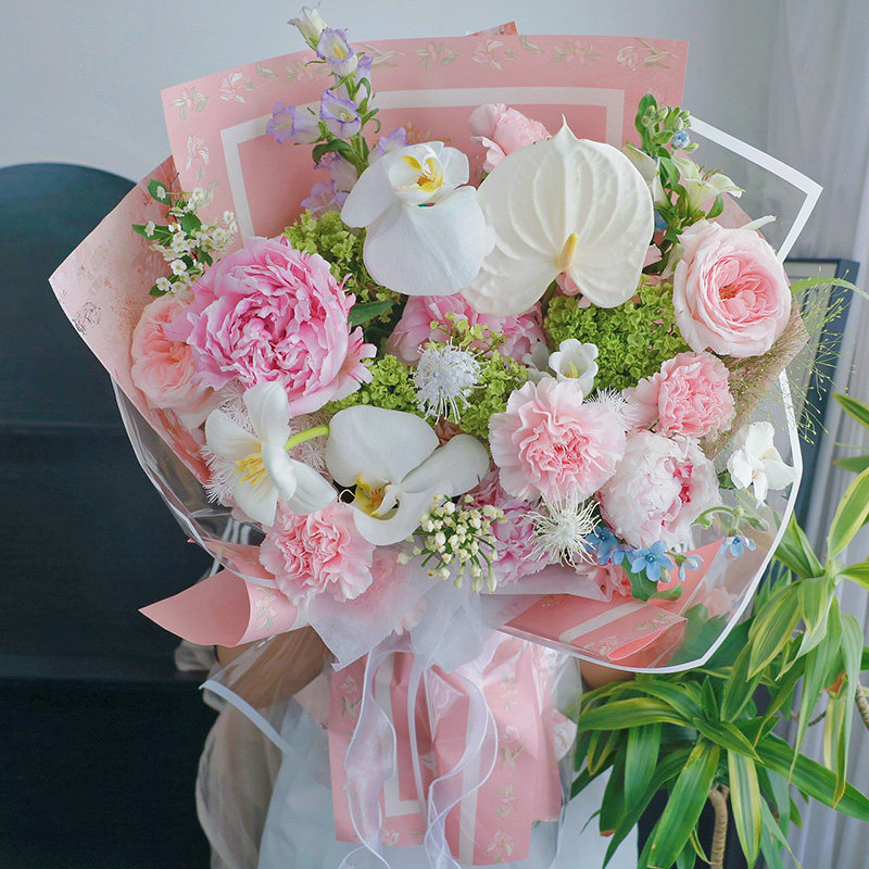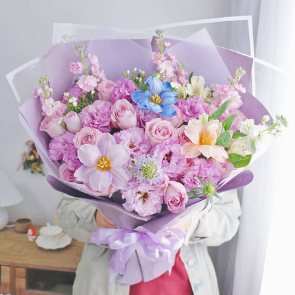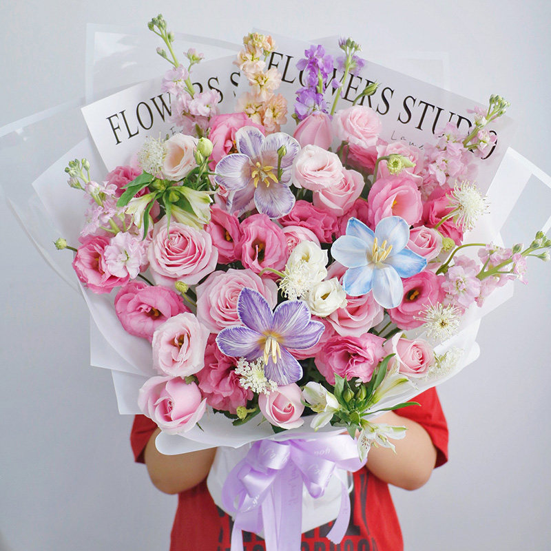 多巴胺荔枝玫瑰混搭花束北京杭州天津上海同城送花情人节送女友