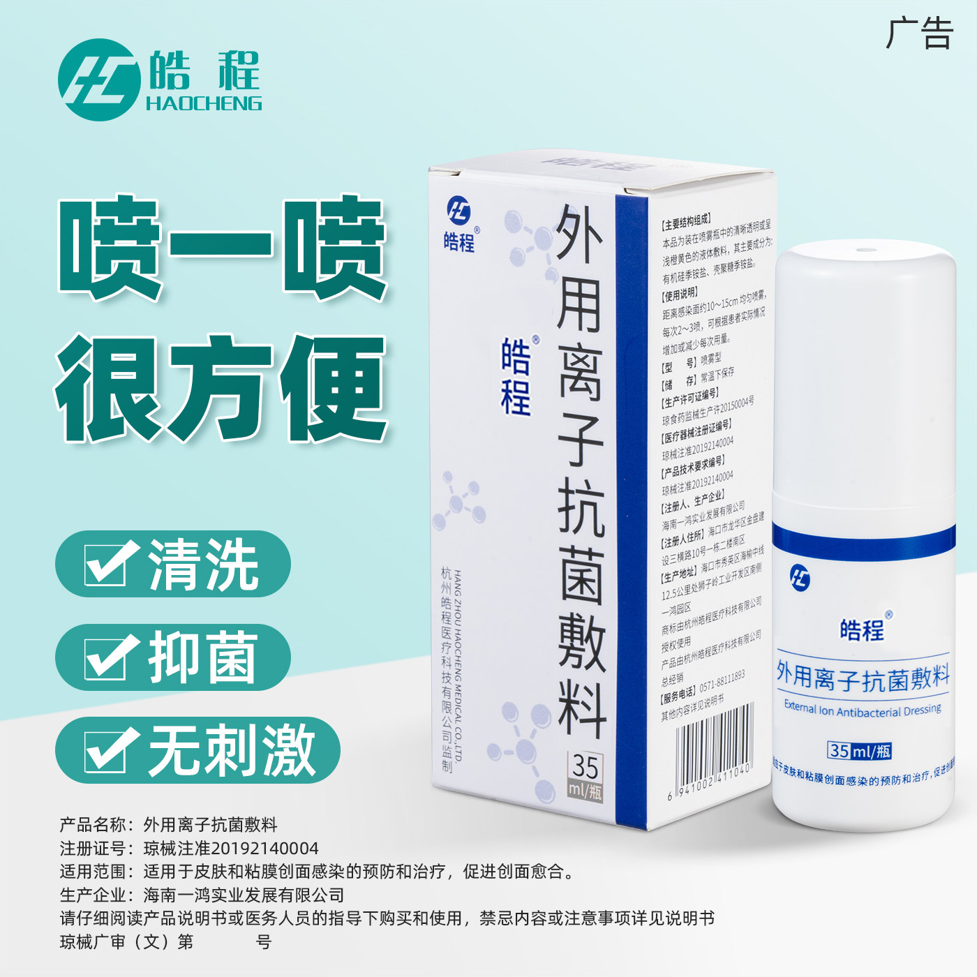 正品皓程抗菌喷雾敷料液体褥疮压疮贴离子杀菌抗感染促进愈合