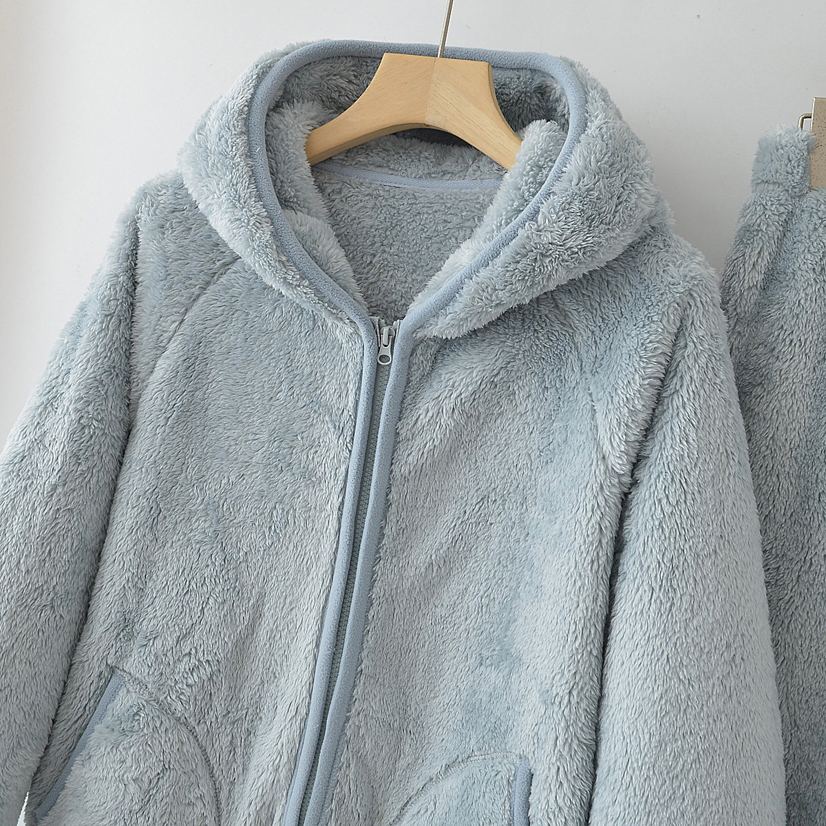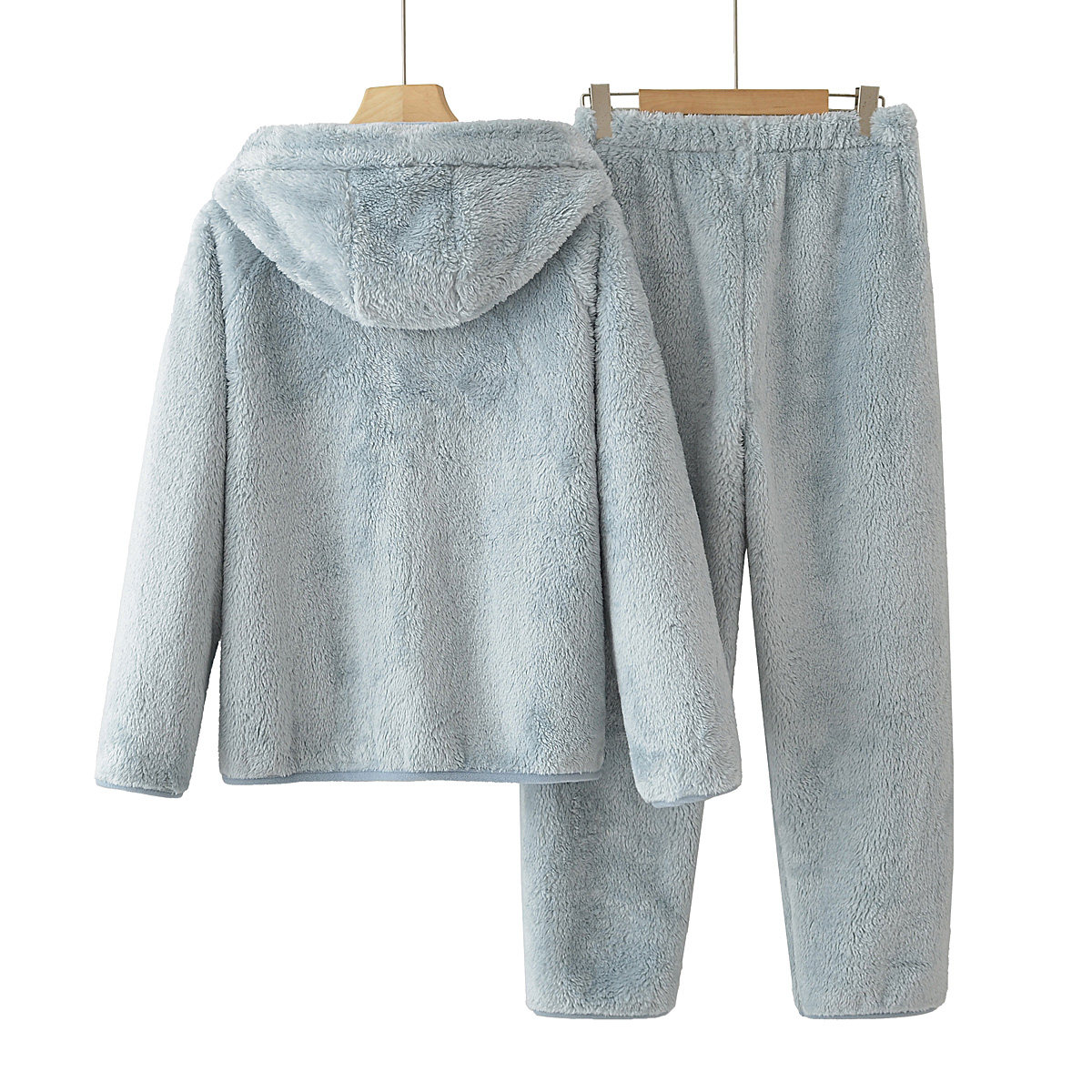 2025冬季新款休闲家居服保暖拉链套装加绒加厚连帽睡衣男可外穿