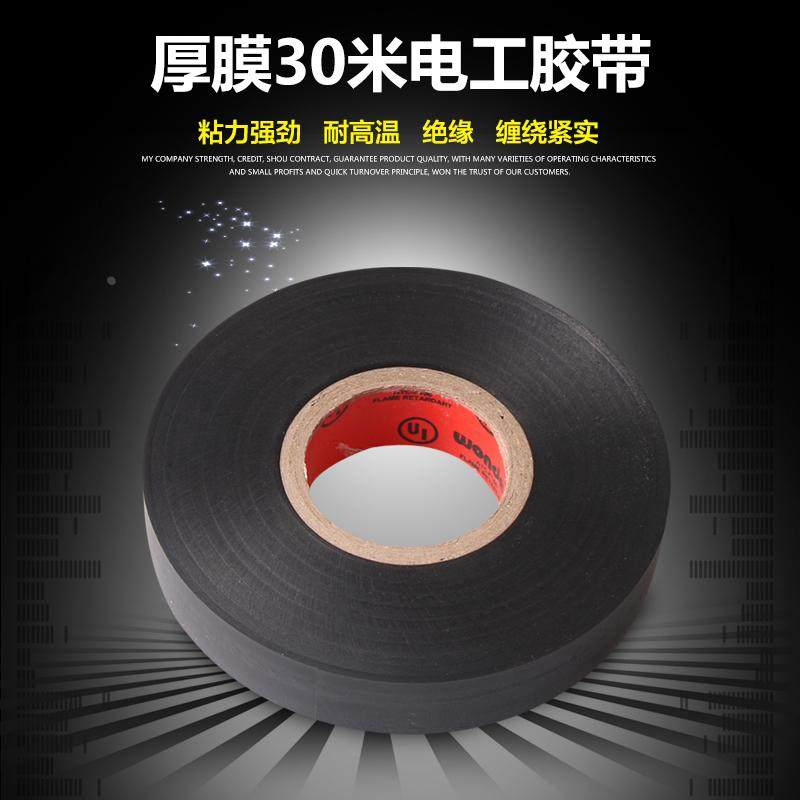 厂价直销20卷包邮绝缘电工胶带PVC胶布万得正品厚膜黑色30米/16mm