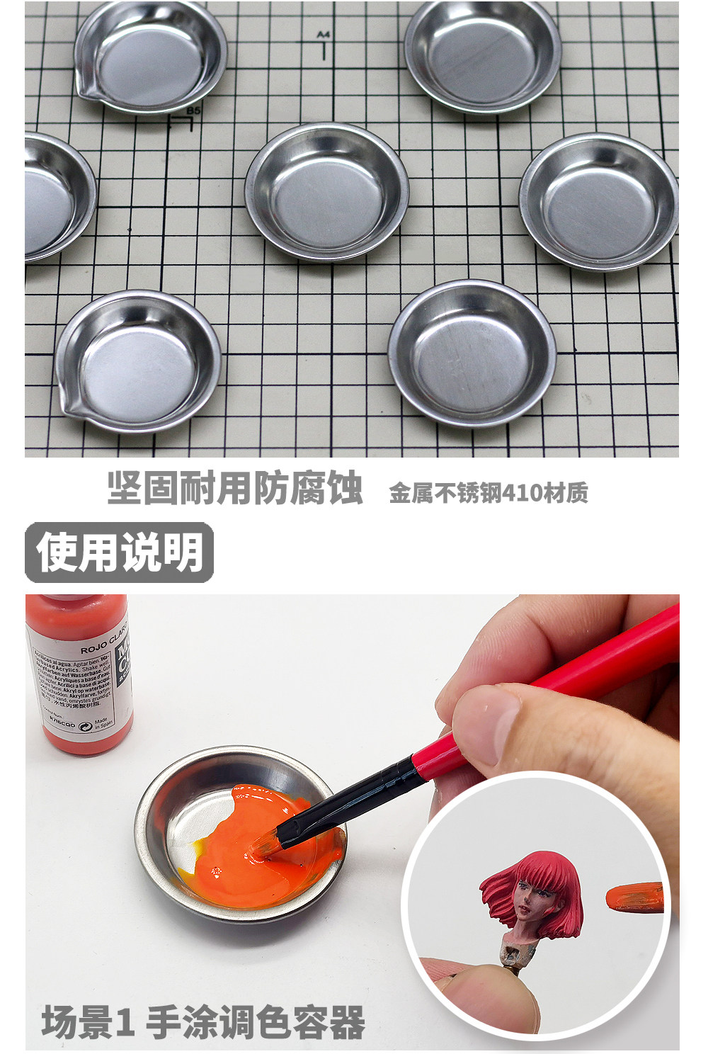 模式玩造调色皿 MS074 高达模型涂装上色工具调漆盘 不锈钢10只装