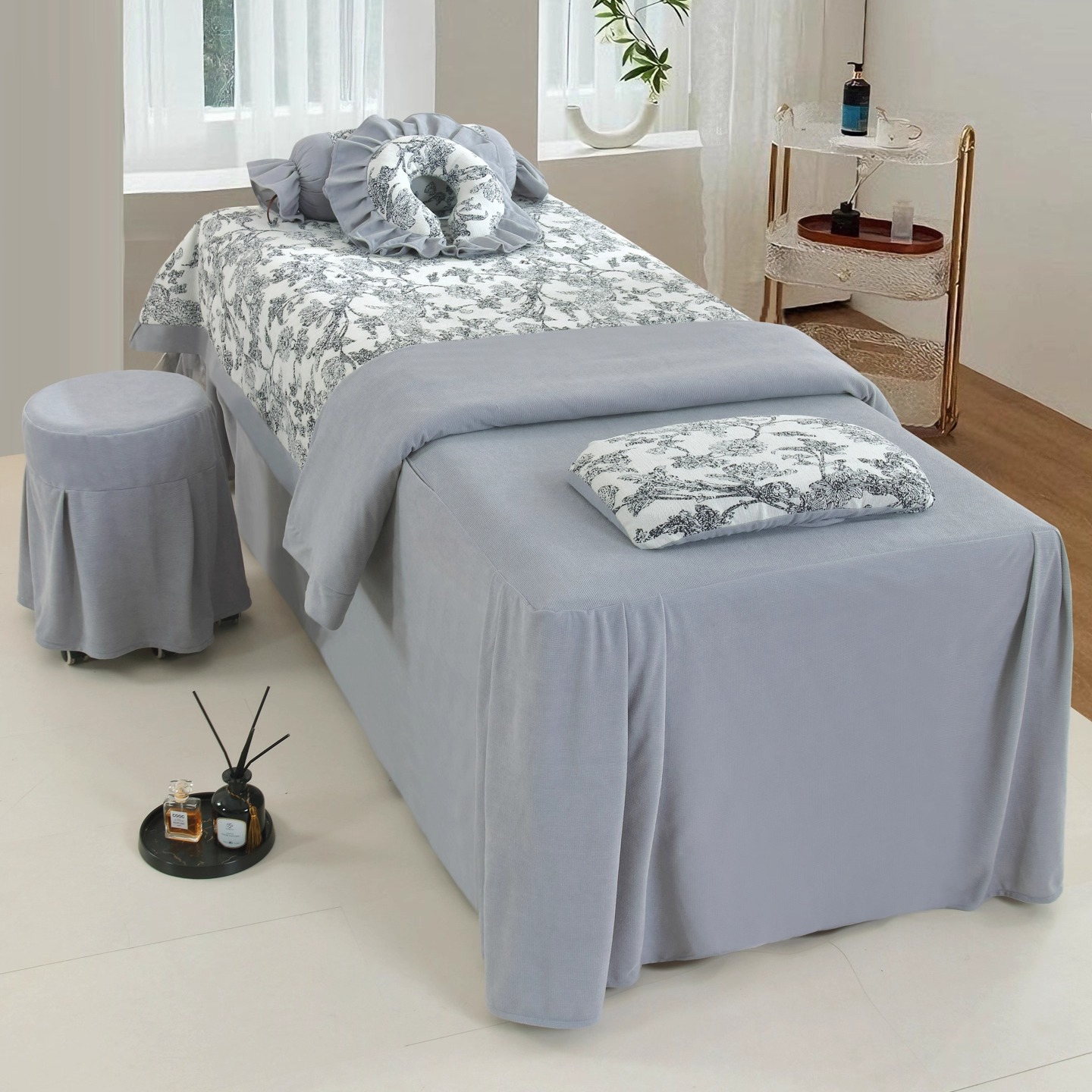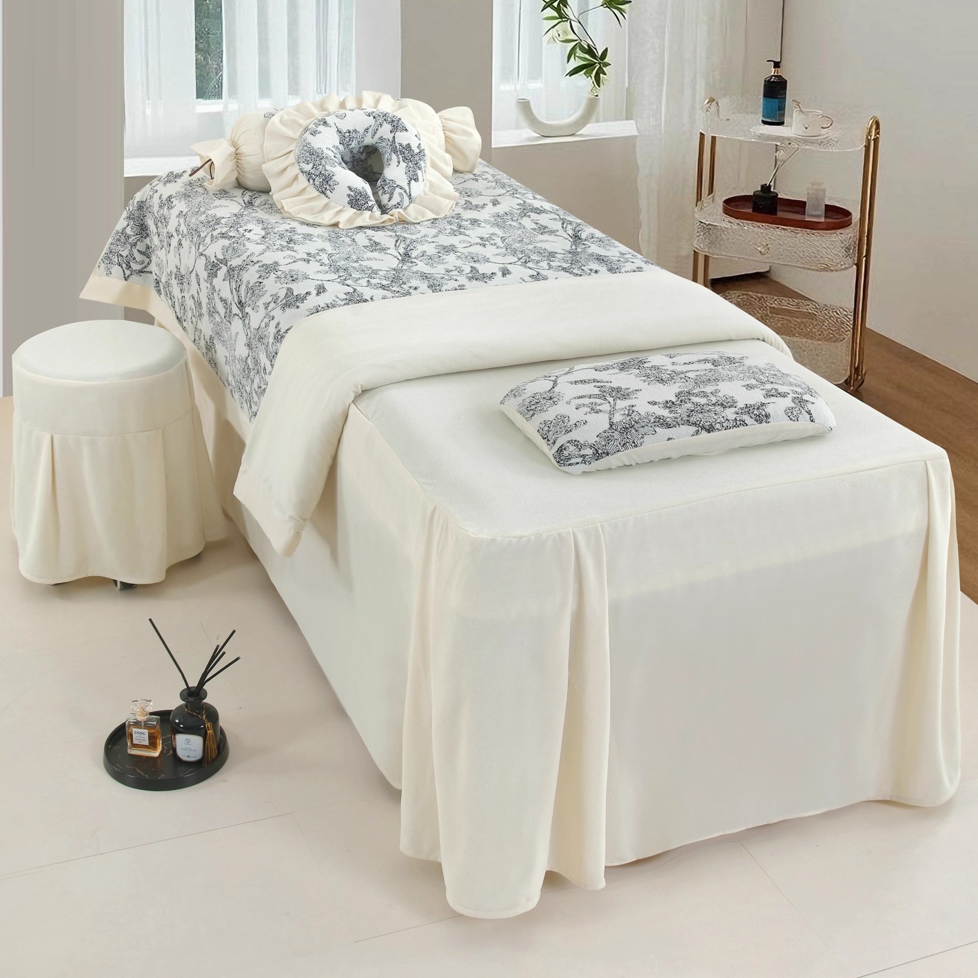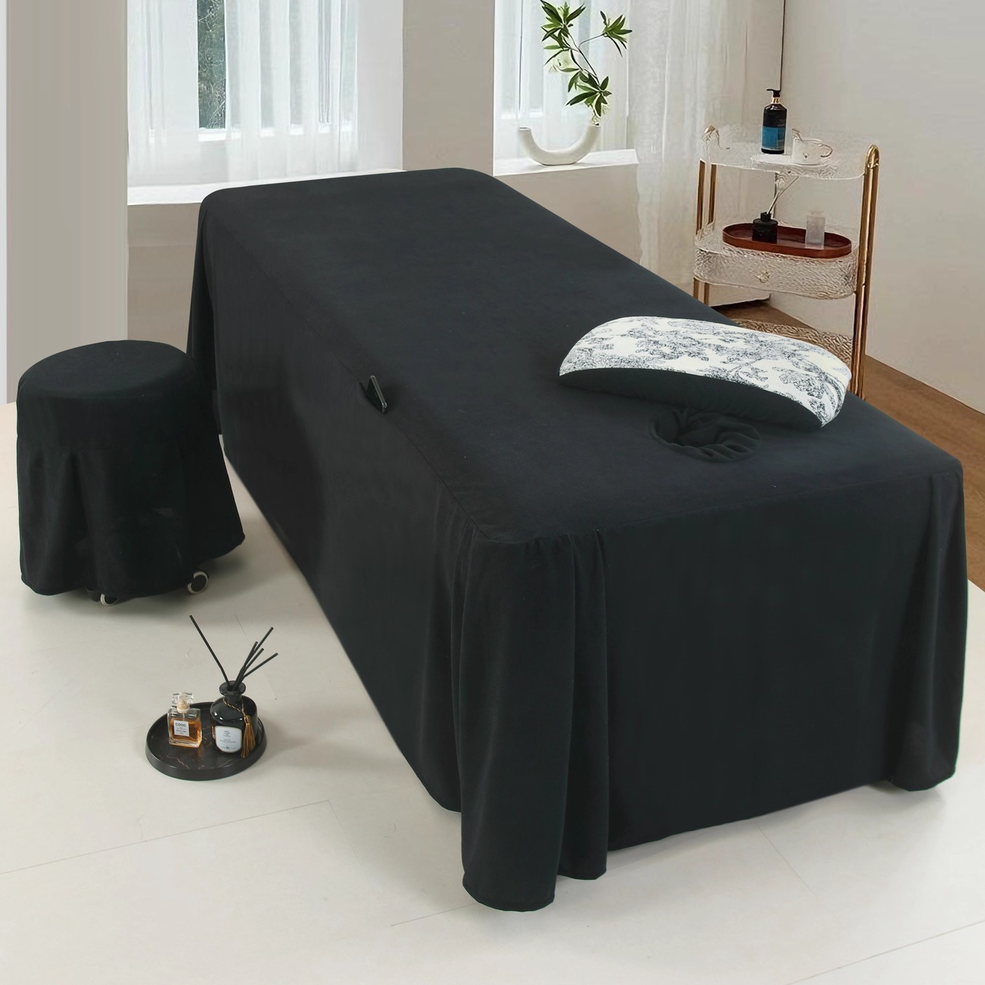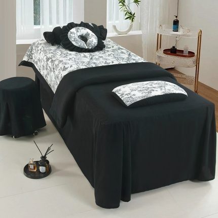 美容单床罩/绒四件套小香风高档黑色按摩美容院专用床罩套定制