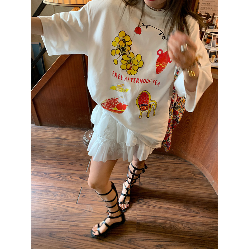 落落狷介 上衣设计感小众女2025年新款小个子显瘦宽松白色短袖T恤