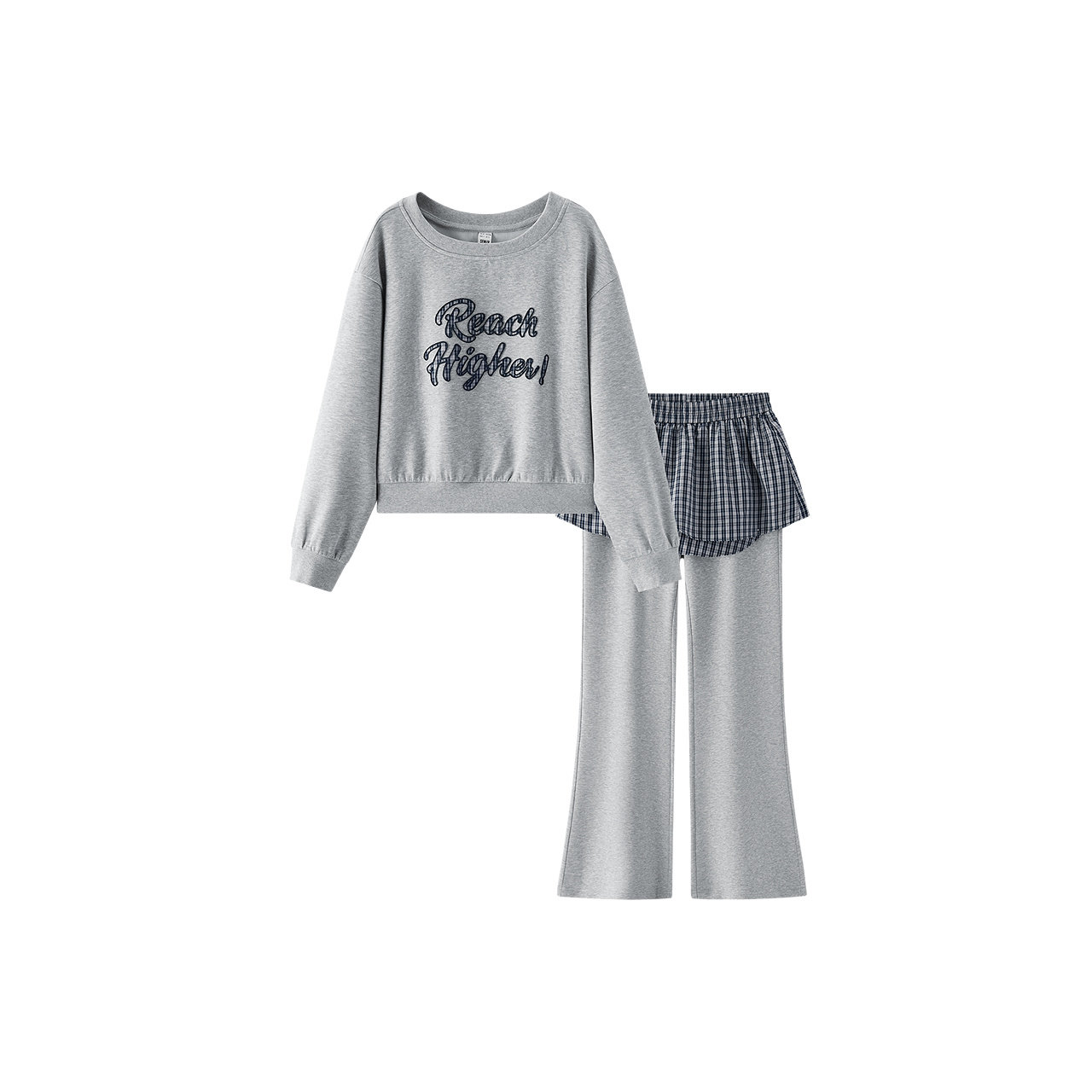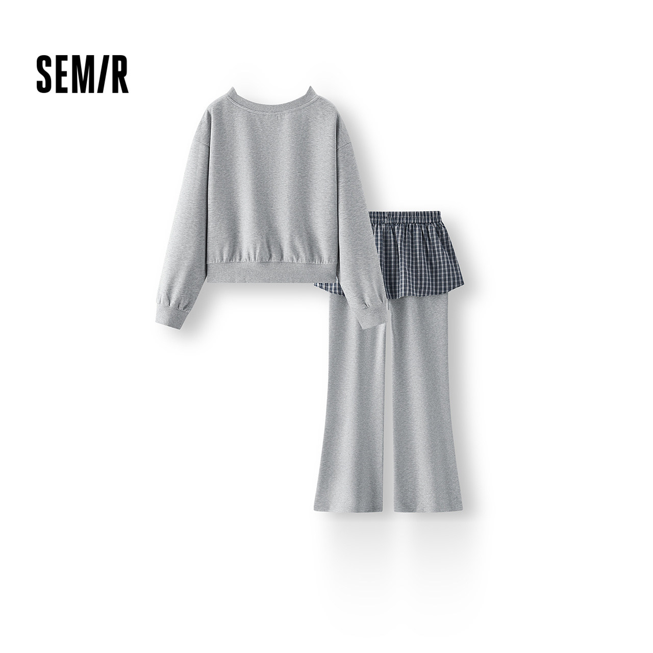 森马斜肩卫衣裙摆喇叭裤套装女