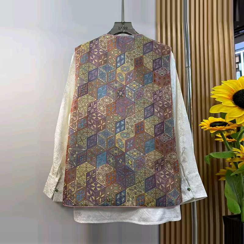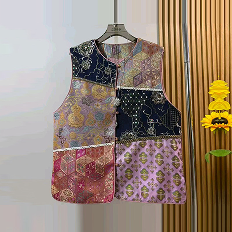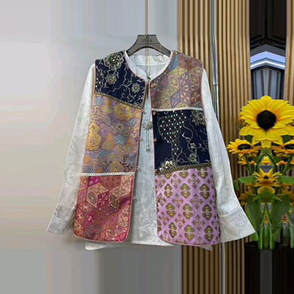 胖妹妹新中式拼色AB版国风马甲加肥大码女装2026新款长袖暗花小衫