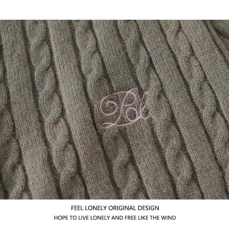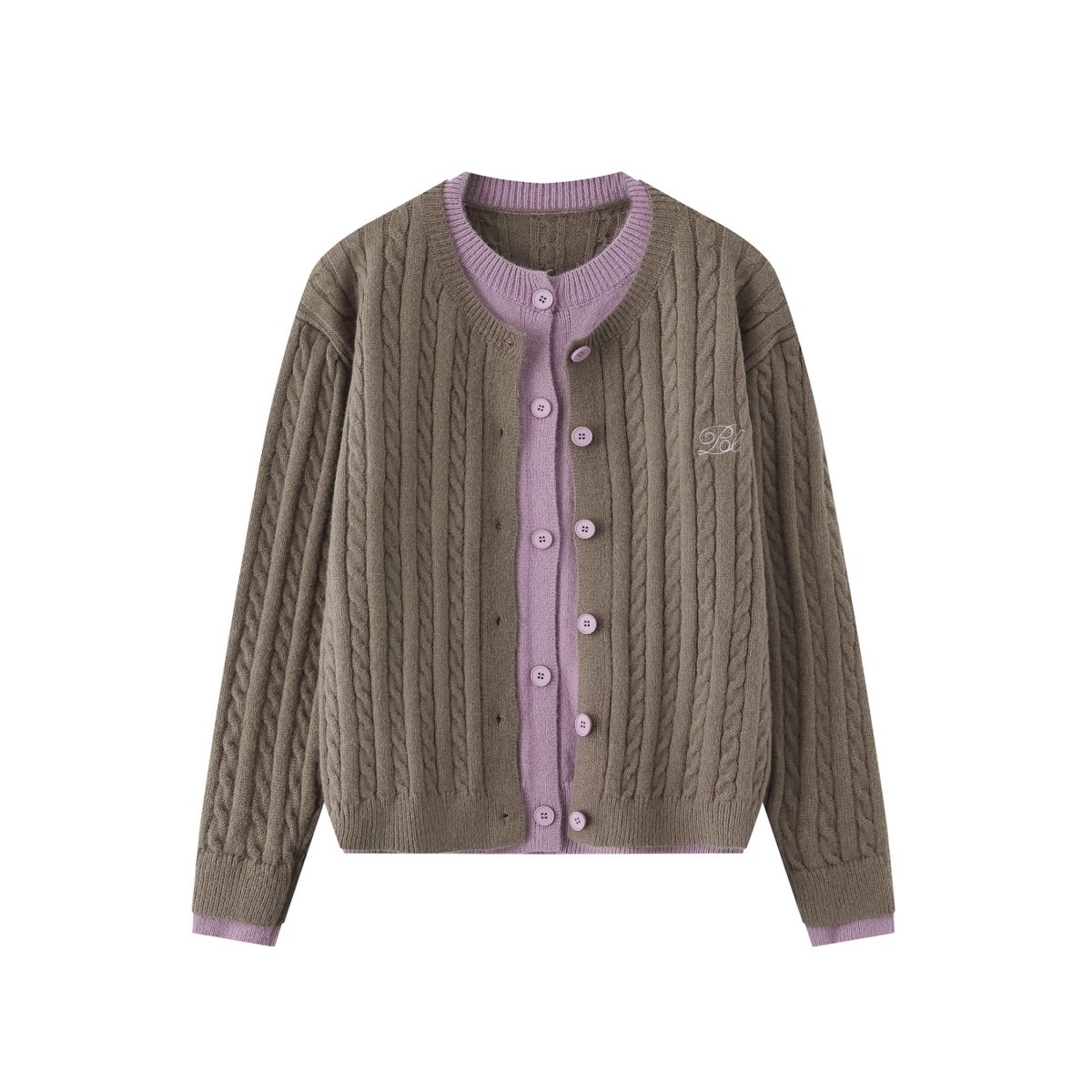Feel lonely 撞色拼接假两件麻花开衫毛衣女2025秋季韩系针织外套