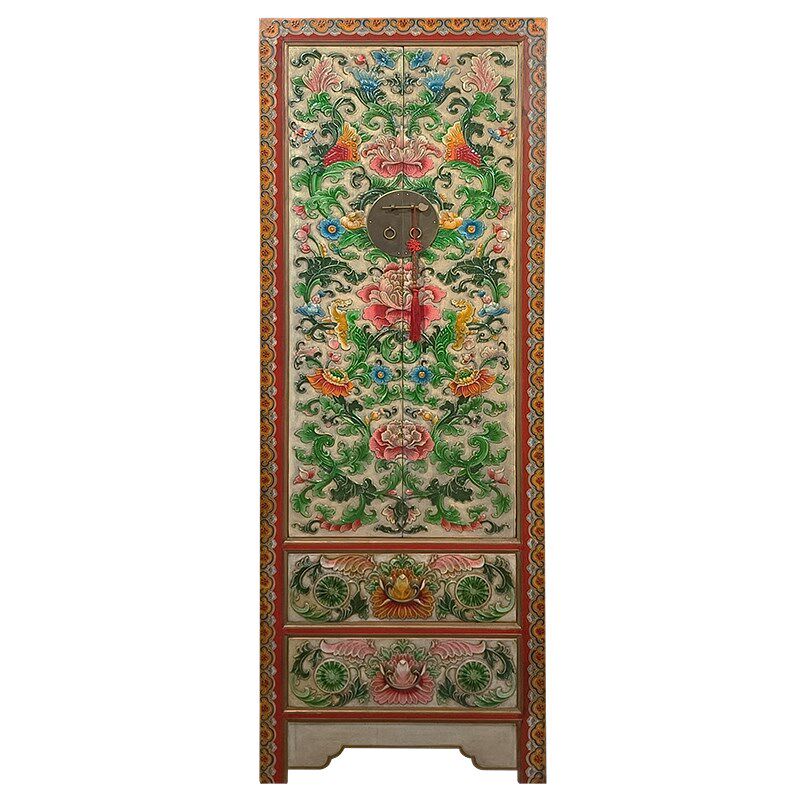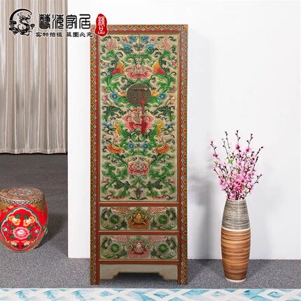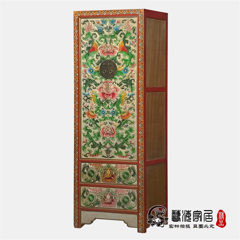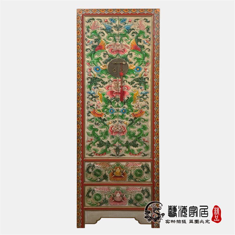 中式实木储物柜复古单人雕花衣柜仿古彩绘高柜整体收纳装饰橱定制
