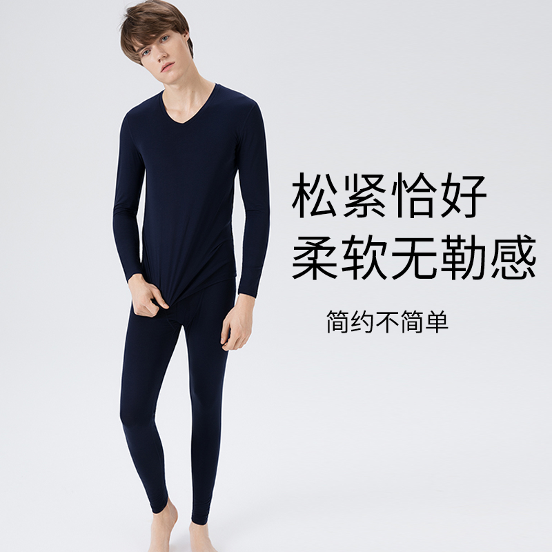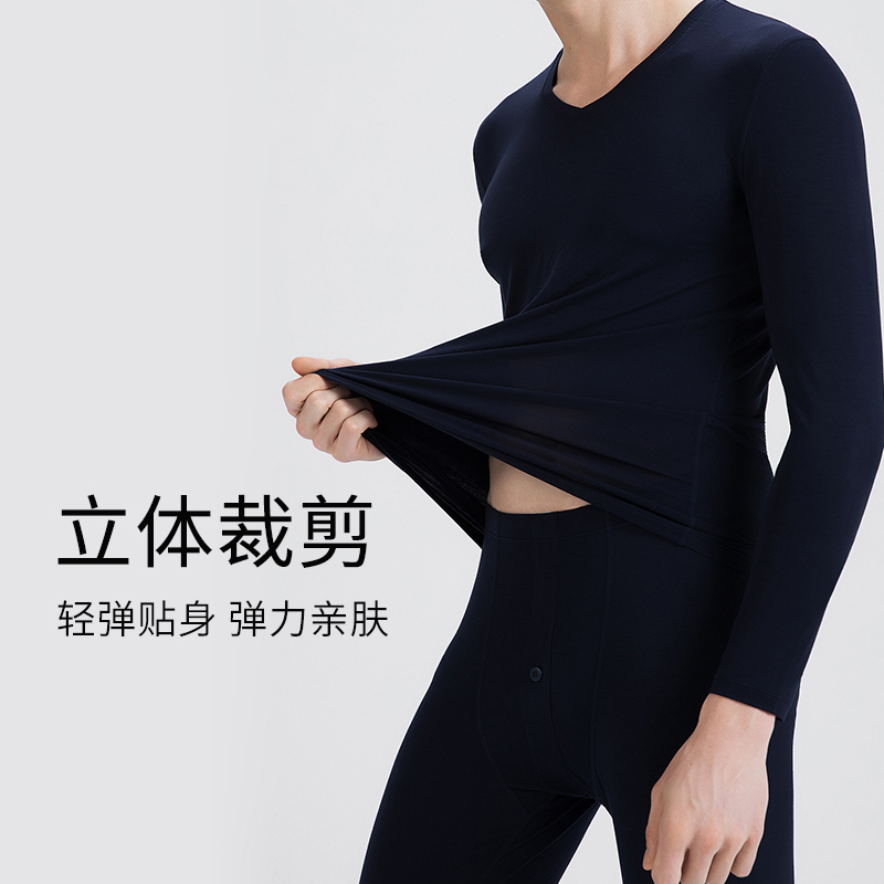 淳度保暖内衣男士套装薄款超弹发热V领打底衫莫代尔秋衣秋裤冬季