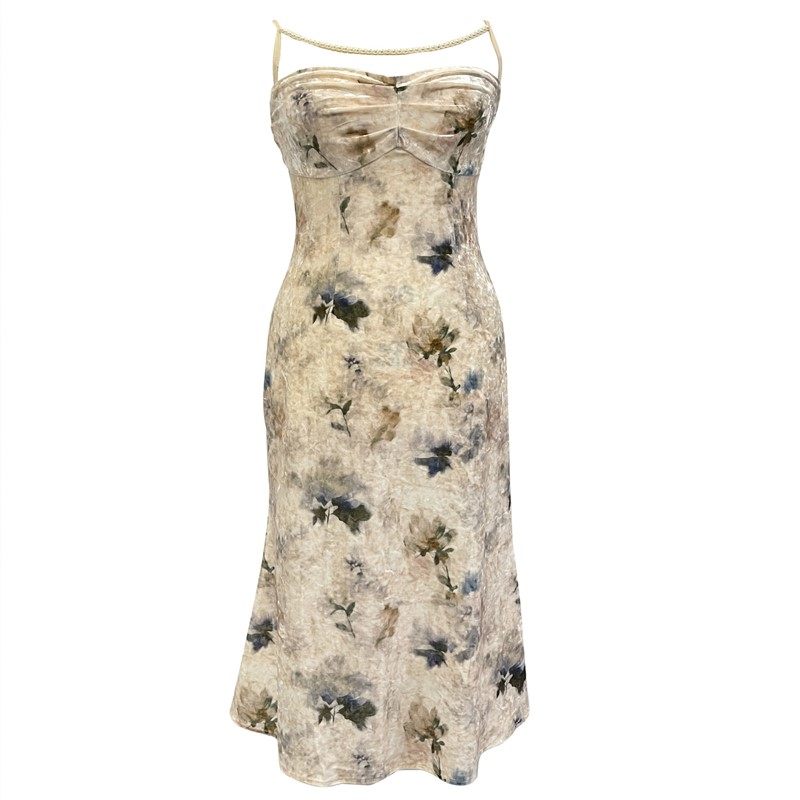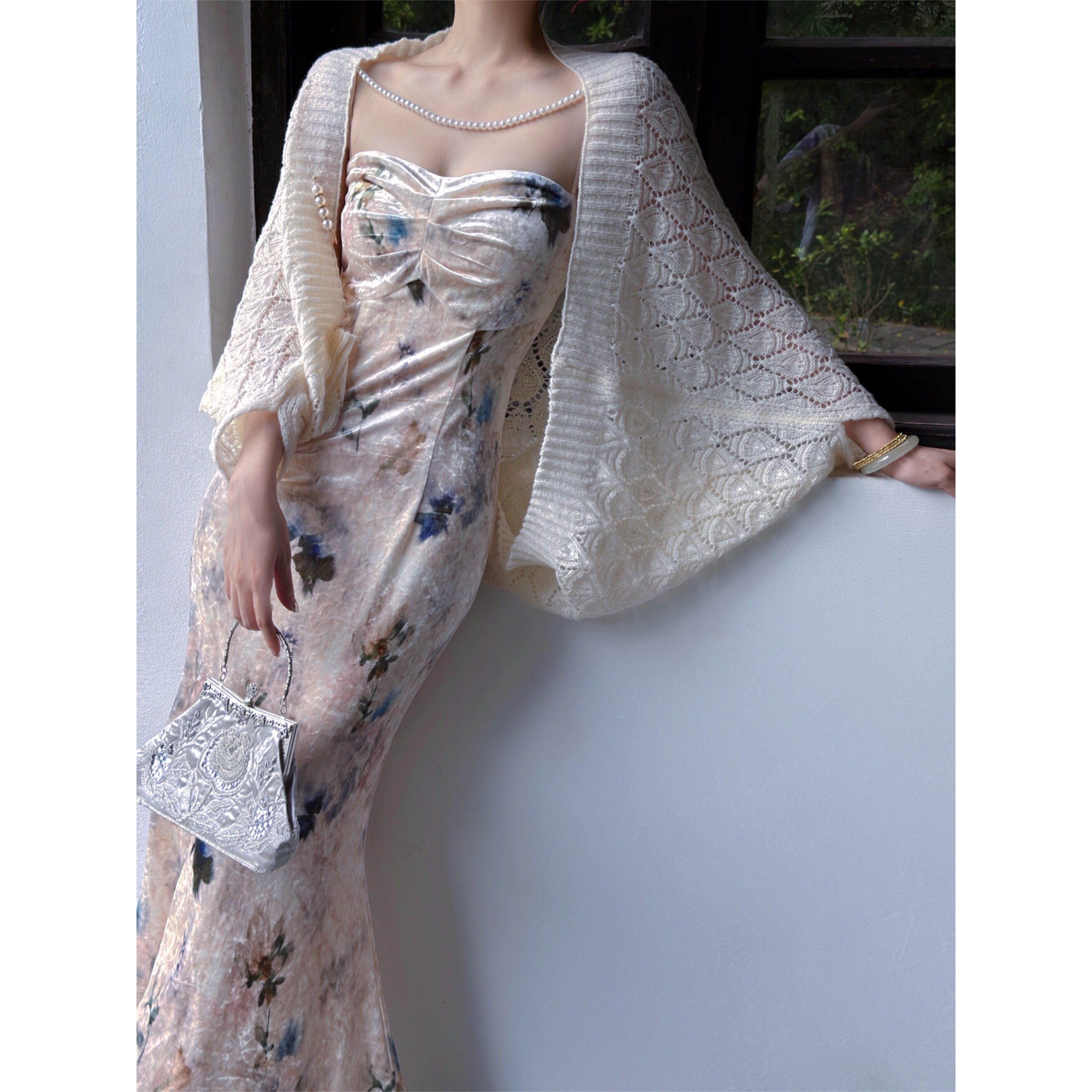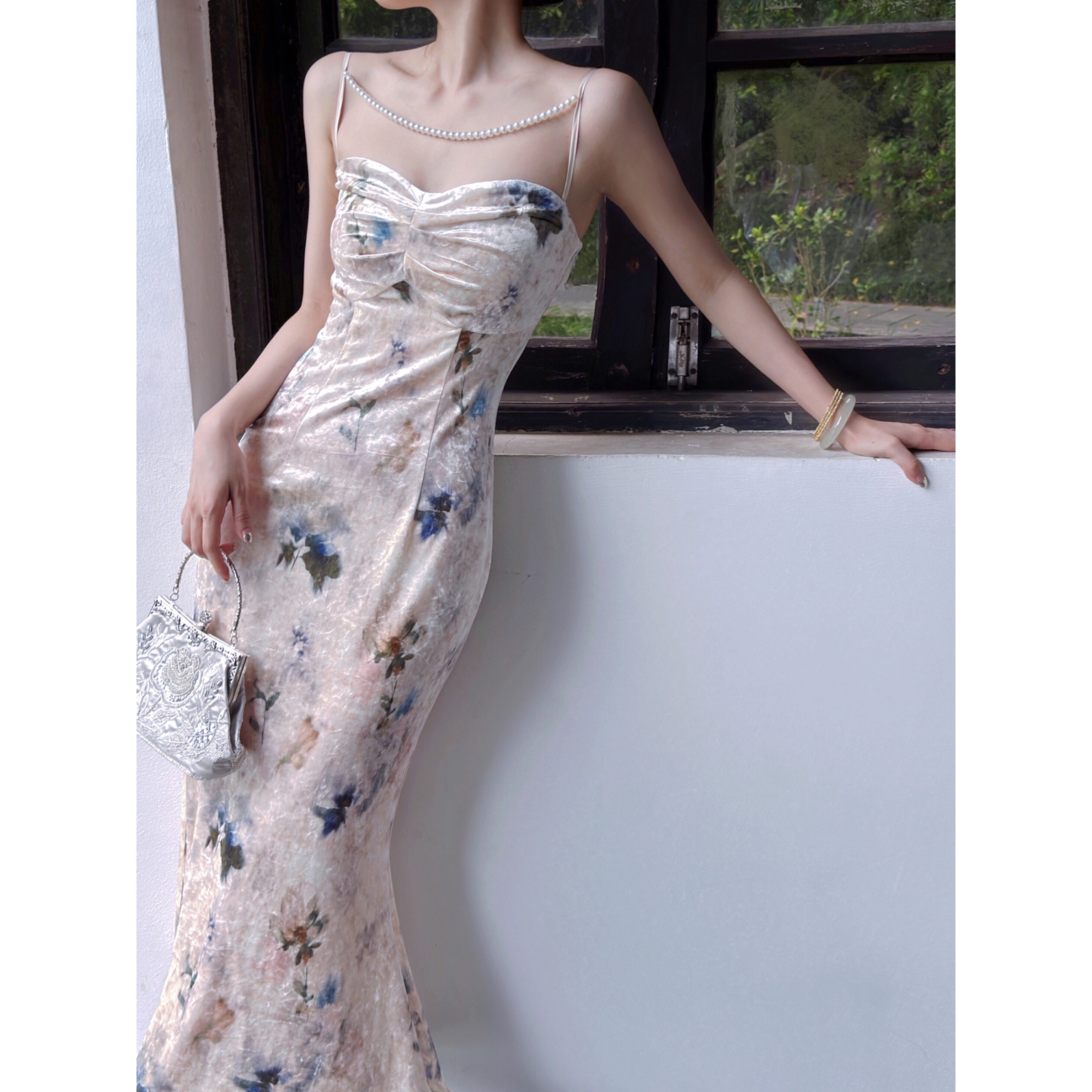橘里"金枝欲孽"东方美学新中式复古丝绒珍珠设计旗袍裙鱼尾连衣裙
