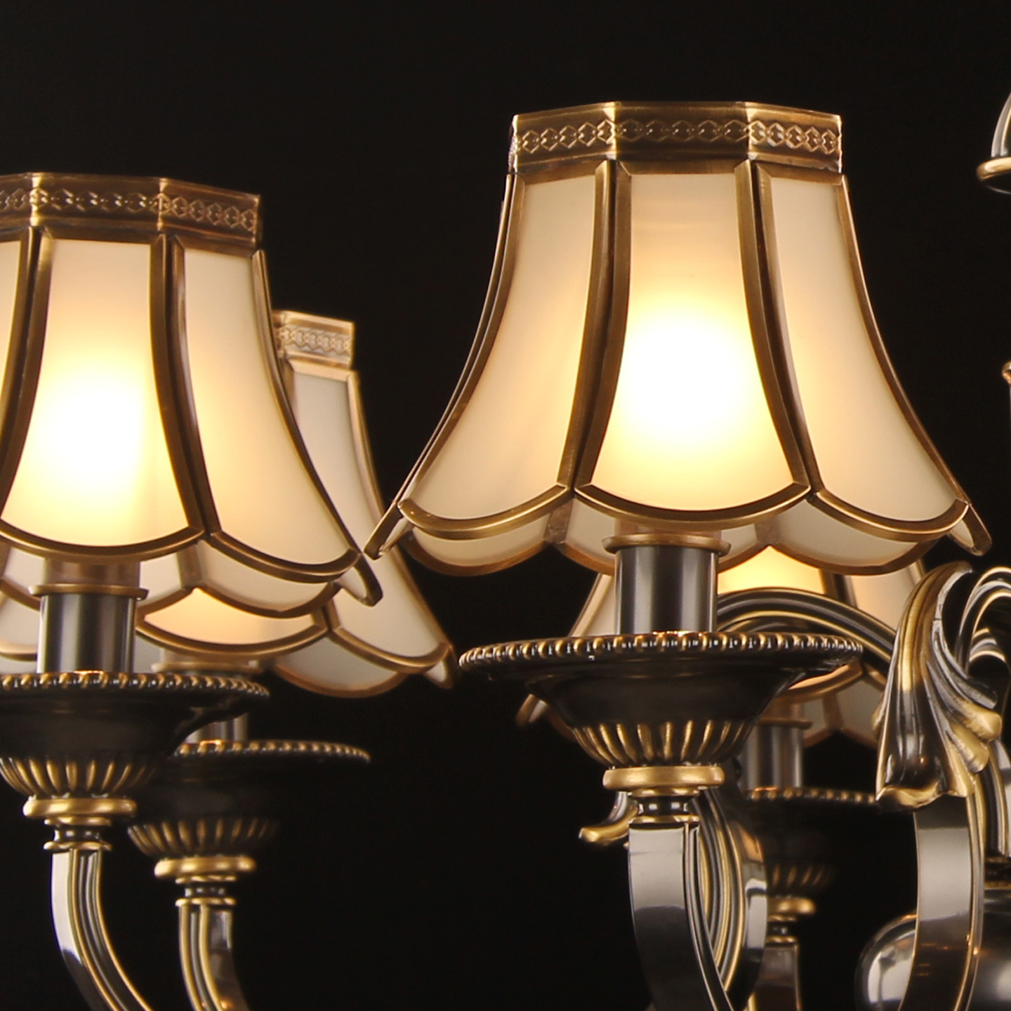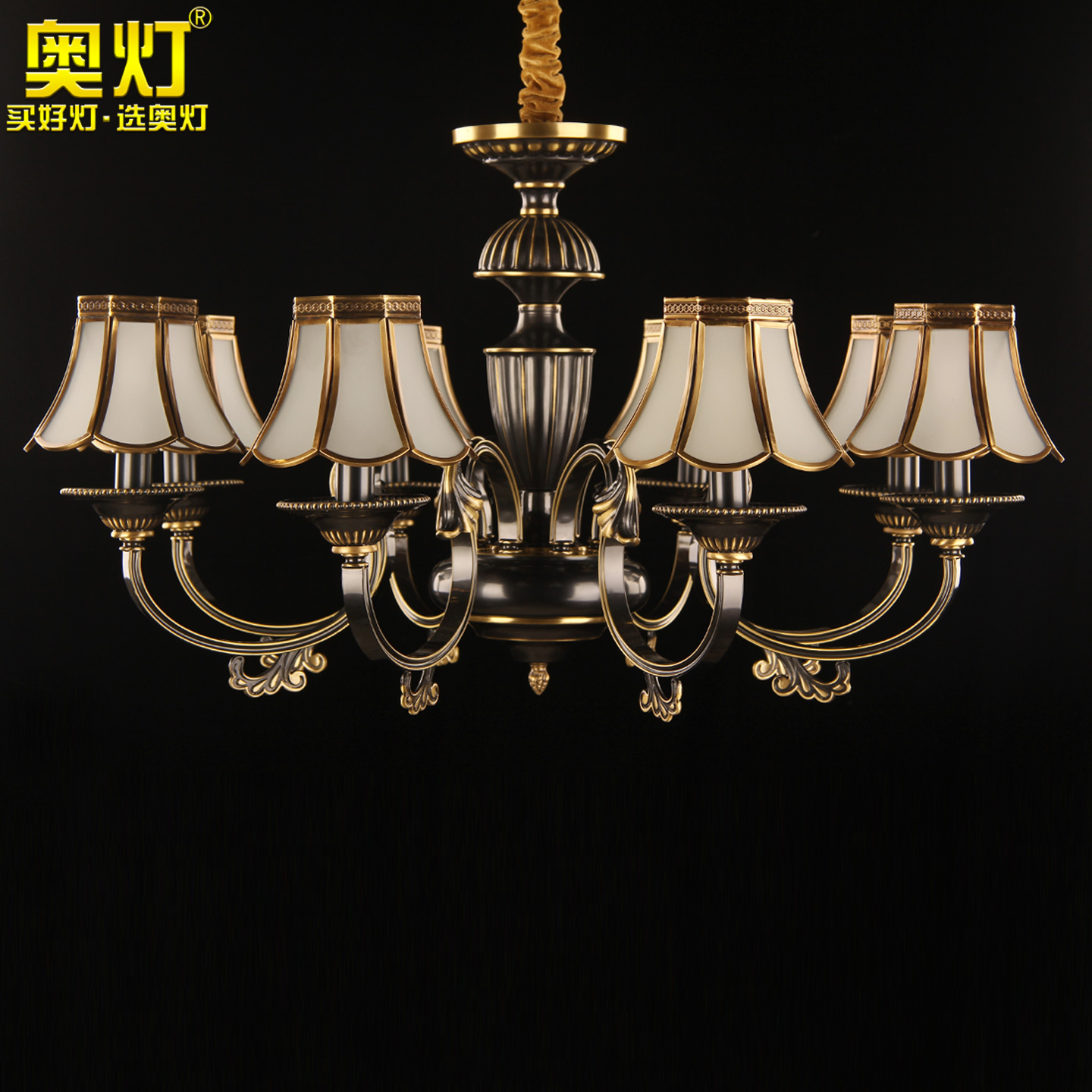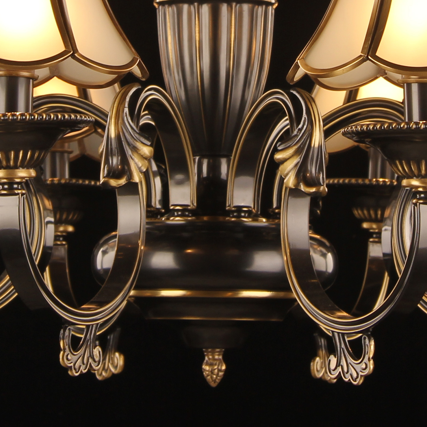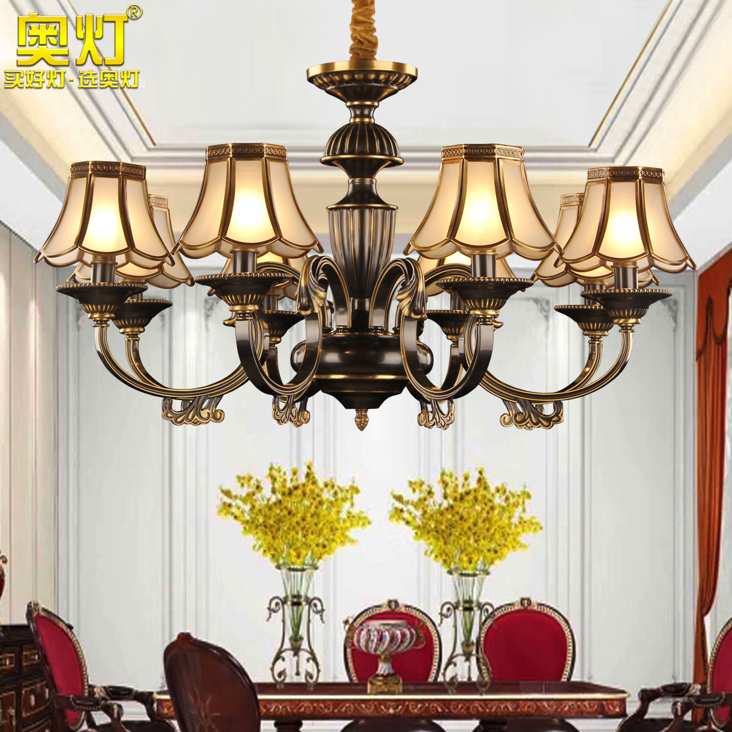 奥灯欧式全铜吊灯简约大气客厅餐厅卧室灯具黑擦金色8头灯饰H058