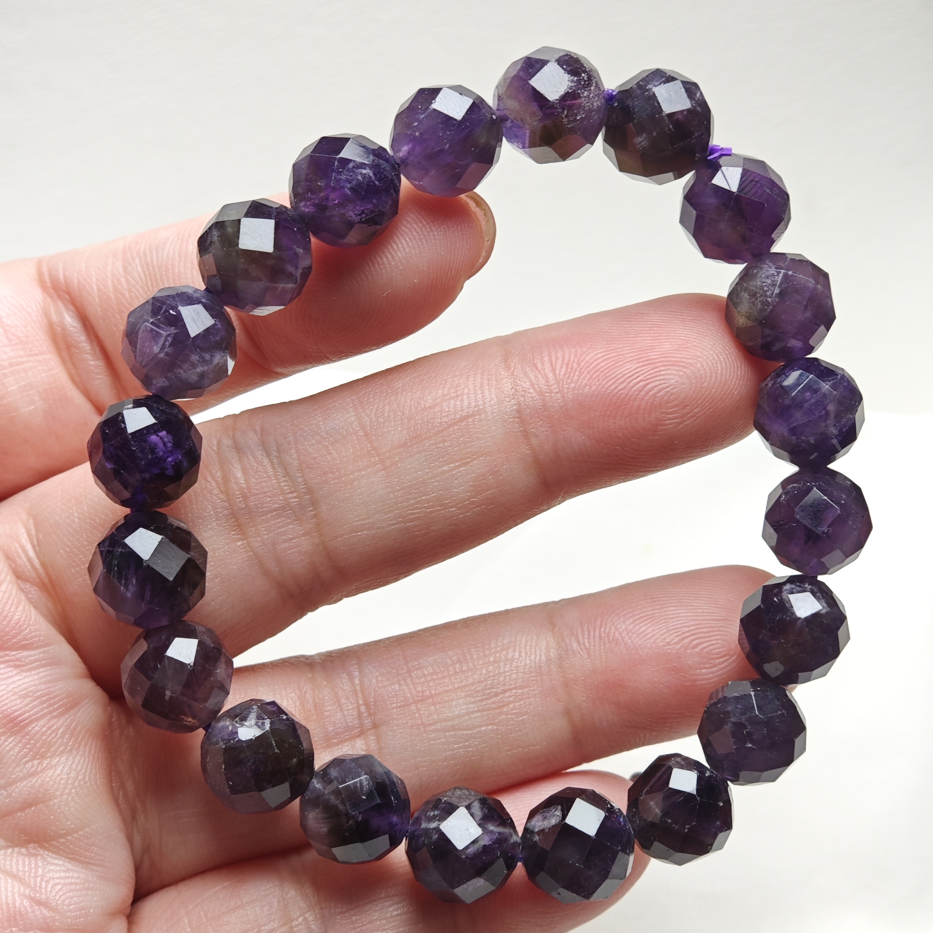 一物一图天然乌拉圭紫水晶手链64钻闪切面深紫水晶薰衣草手串女饰