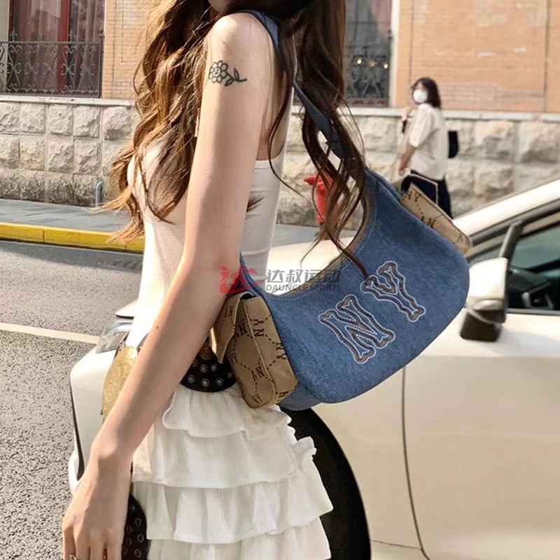 24新款MLB情侣腋下包男女NY仿牛仔挎包可调节手提拎包3ABQM134N