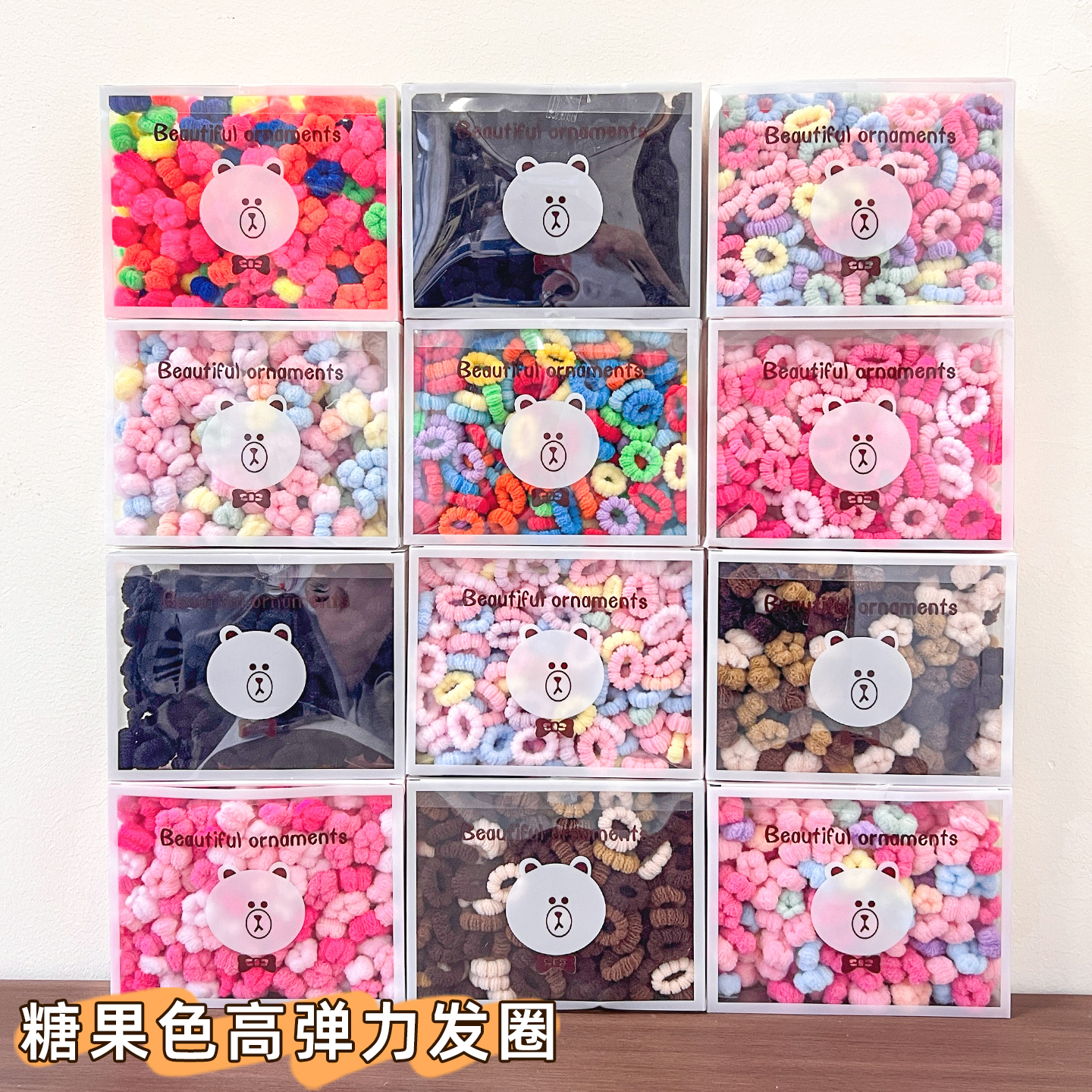 宝宝扎头发皮筋发饰高弹力耐用女孩不伤发头绳儿童糖果色盒装发圈