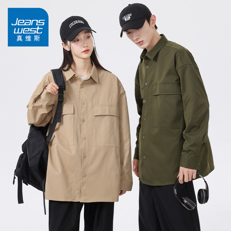 KZ真维斯春季长袖衬衫男士外套夹克外穿内搭百搭潮牌上衣服春秋款