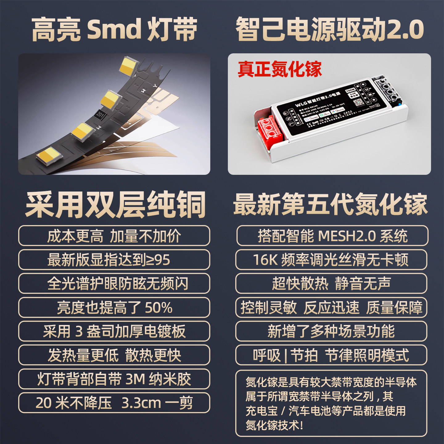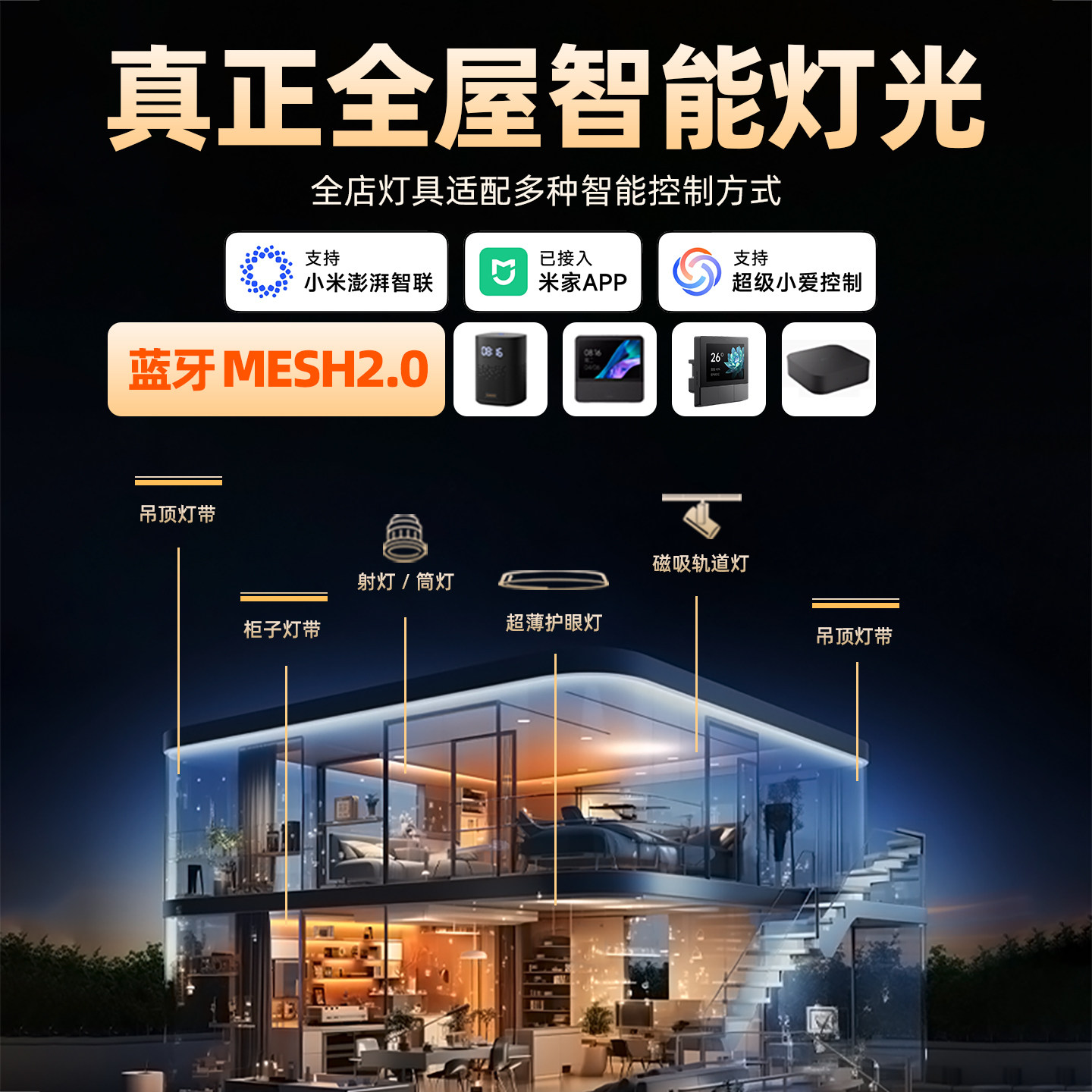 已接入米家APP智能SMD高亮灯带全光谱无极调光客厅吊顶线形灯24V