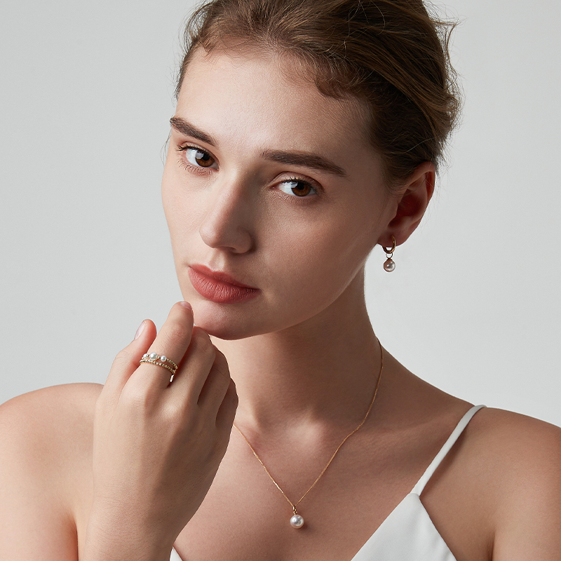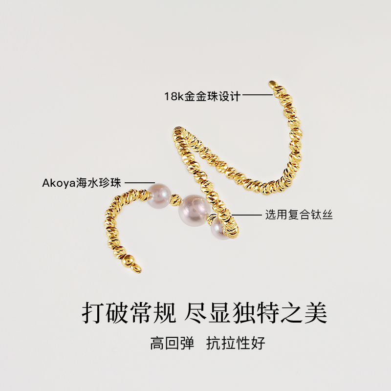 【博主同款】BEAUFINA百分娜Akoya海水珍珠戒指18K金女弹簧戒指