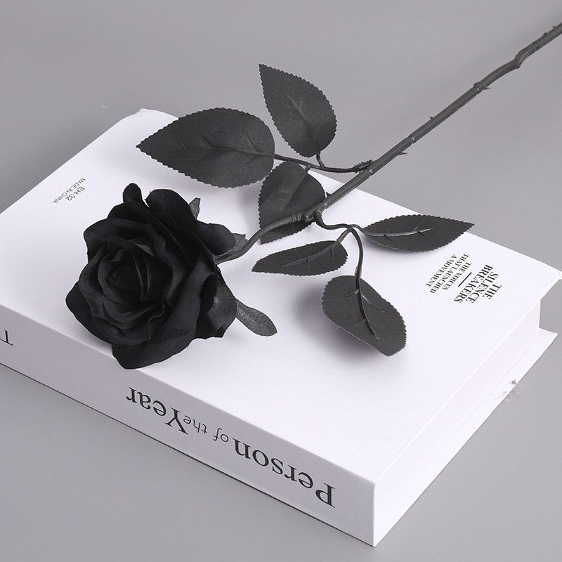 仿真暗黑色玫瑰 黑红玫瑰仿真花绢花 DIY装扮手捧花 拍摄道具配饰