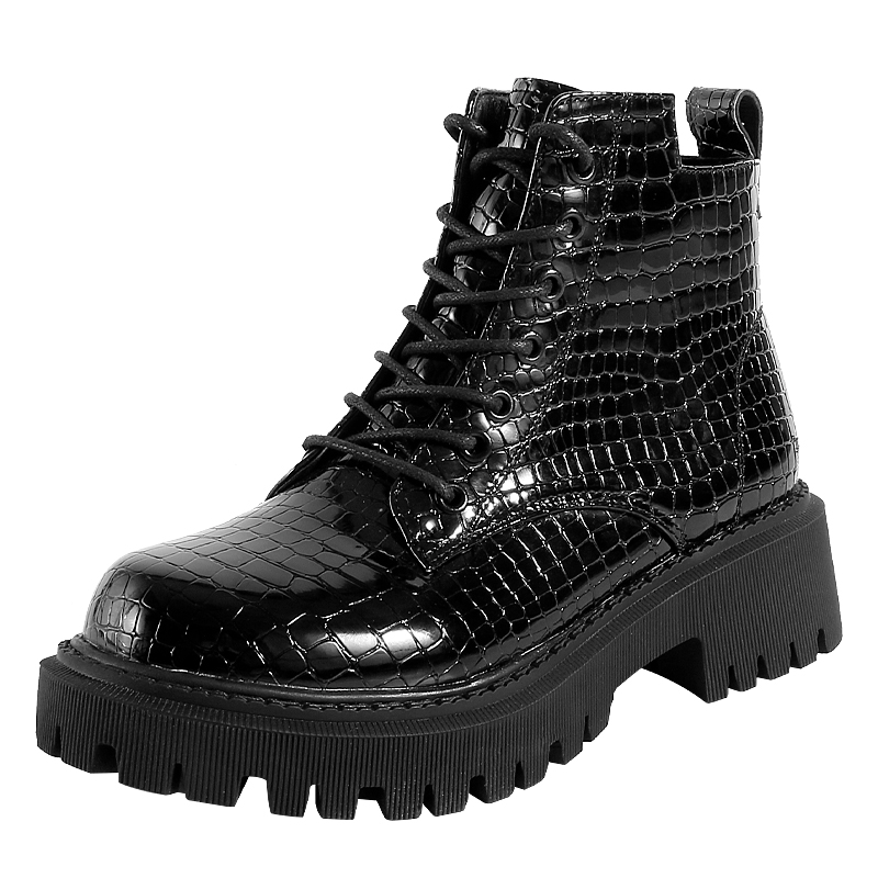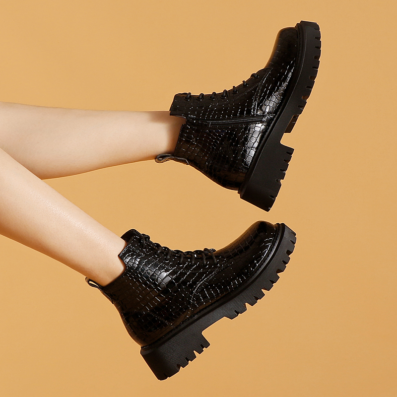 2025年秋季单靴绑带女短靴花皮英伦风短筒马丁靴中跟棉靴子骑士靴