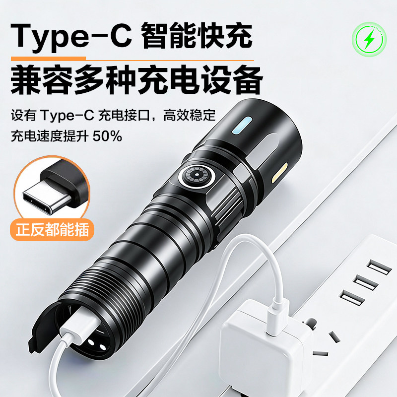 新款小型便携手电筒户外超长续航大容量强光照明儿童迷你白激光炮