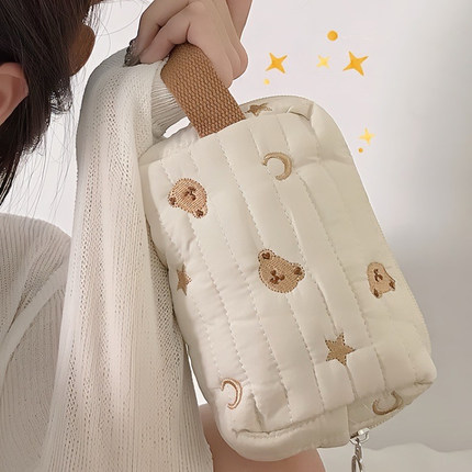 美拉德小熊手提化妆包女便携式大容量小杂物收纳包可爱小号收纳袋