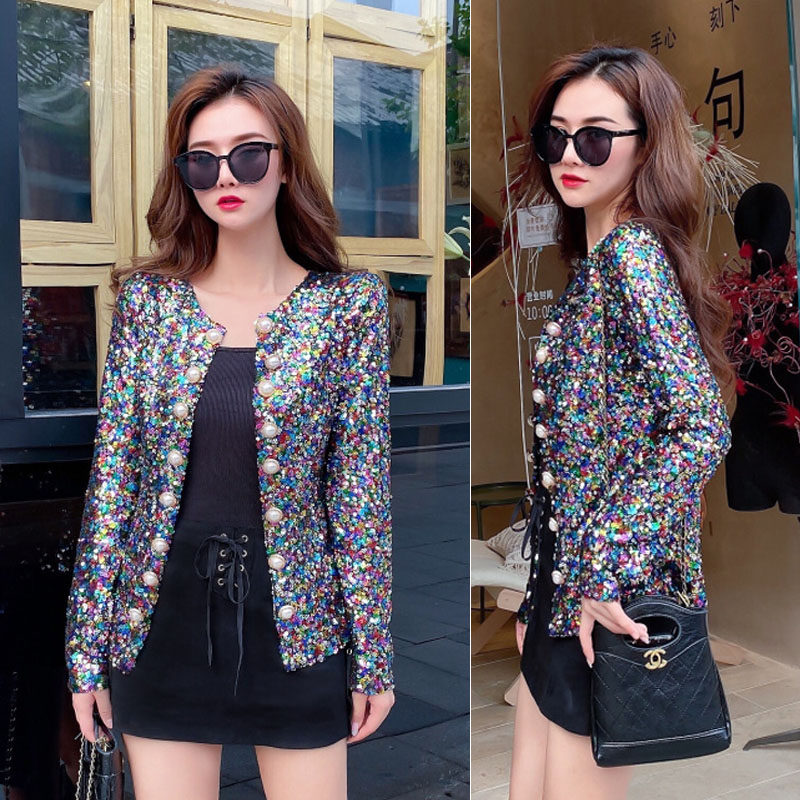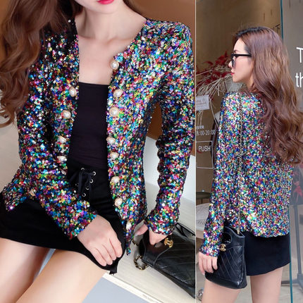 舞台表演服装重工短款西服Bling亮片闪闪修身上衣开衫西装小外套