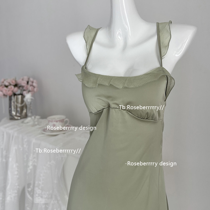 Roseberrrry沁人绿意 纯欲性感法式高级感冰丝吊带睡裙带胸垫睡衣
