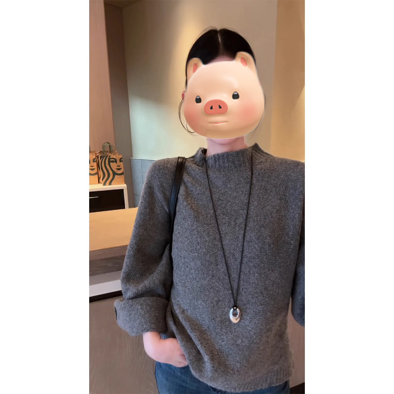 巨好看的灰色圆领套头毛衣女秋冬