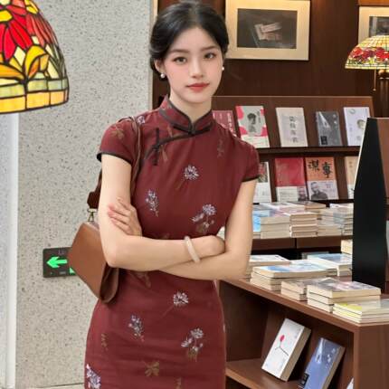 Ti提提 山茱萸 棉麻小花刺绣旗袍新中式连衣裙优雅高级感敬酒服