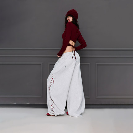 CBXLAB街舞潮牌白灰高级感宽松显瘦运动裤嘻哈跳舞垂坠感休闲长裤