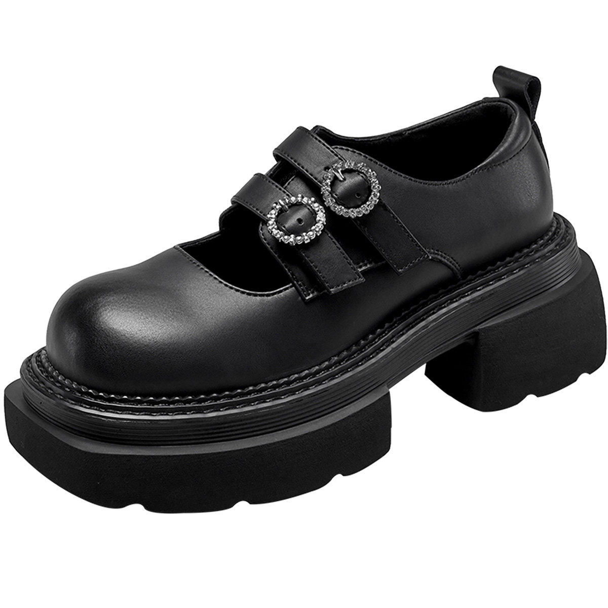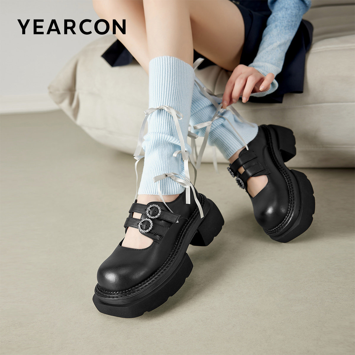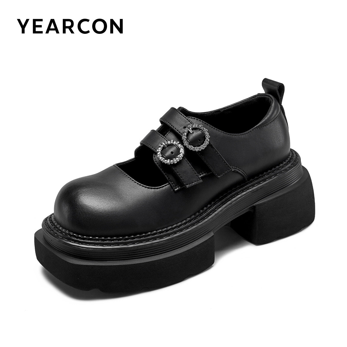 意尔康厚底通勤乐福鞋女春秋新款时尚女鞋百搭黑色单鞋增高小皮鞋