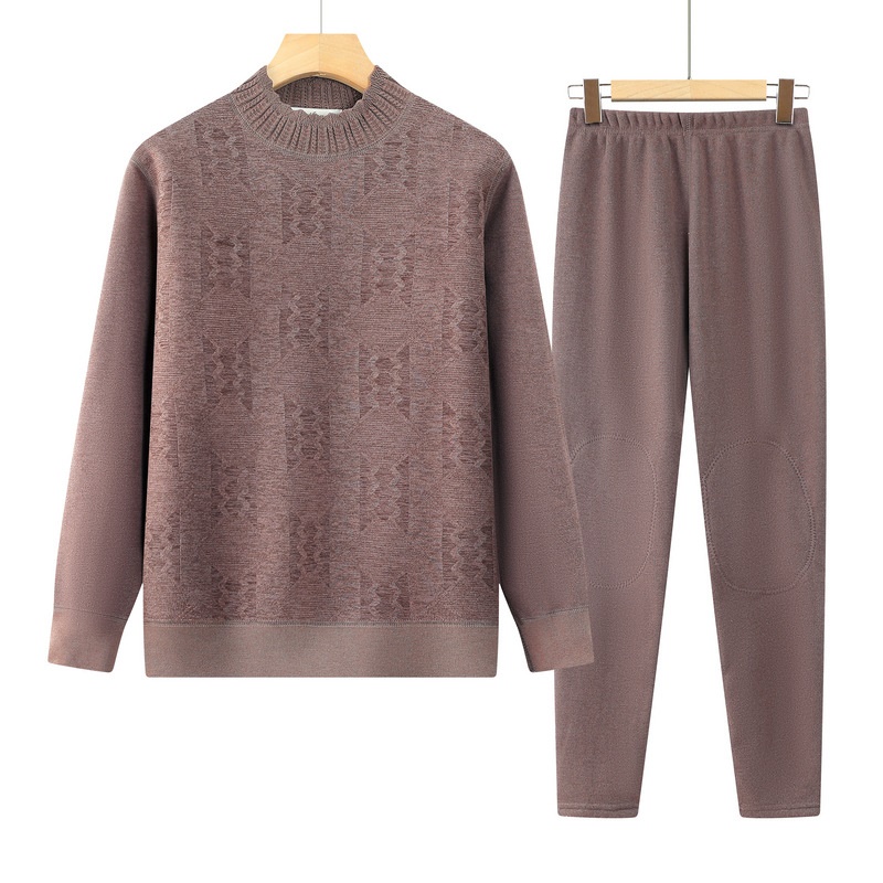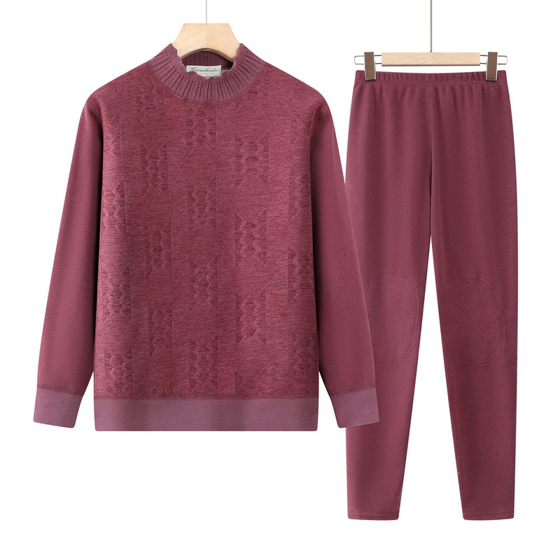 秋冬中老年保暖内衣女打底衫加绒加厚大码半高领妈妈秋衣秋裤套装